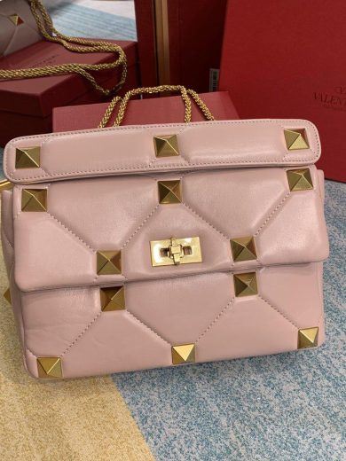 VALENTINO LARGE ROMAN STUD THE SHOULDER BAG IN NAPPA WITH CHAIN PINK WW2B0I60BSFGF9