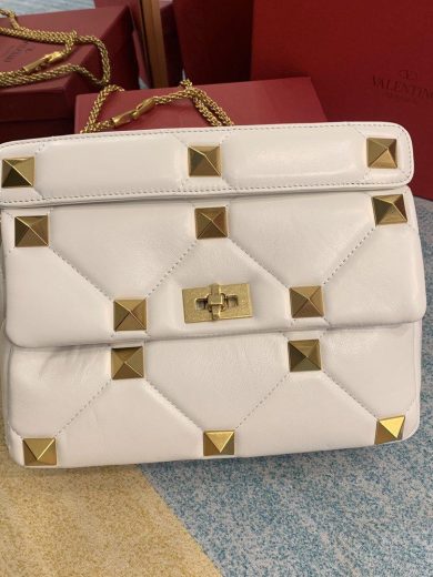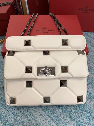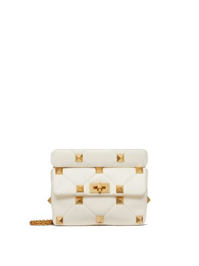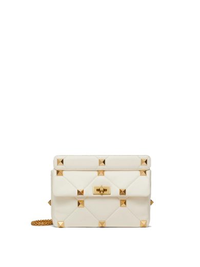 VALENTINO MEDIUM ROMAN STUD THE SHOULDER BAG IN NAPPA WITH CHAIN WHITE XW2B0I82BSF098