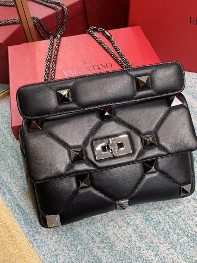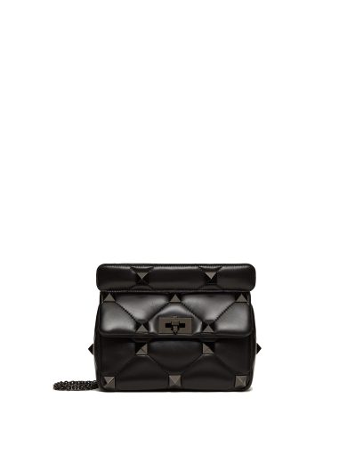 VALENTINO MEDIUM ROMAN STUD THE SHOULDER BAG IN NAPPA WITH CHAIN AND TONAL STUDS BLACK XW2B0I82LWB0NO