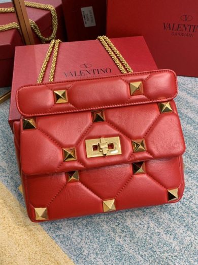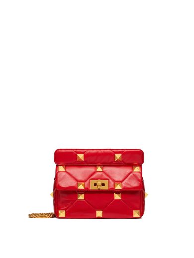 VALENTINO MEDIUM ROMAN STUD THE SHOULDER BAG IN NAPPA WITH CHAIN RED WW2B0I82BSFJU5