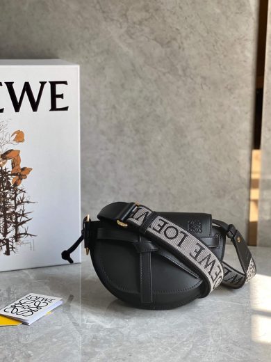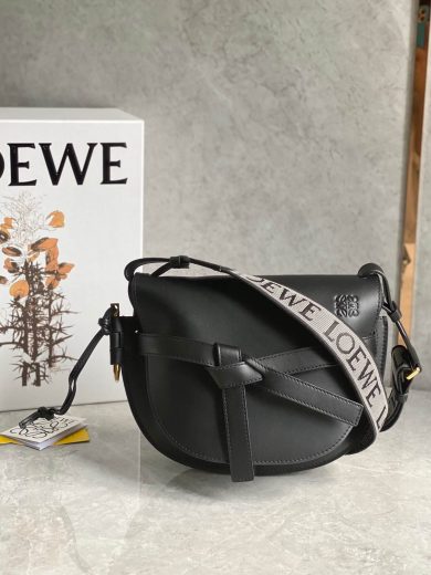 LOEWE SMALL GATE BAG IN SOFT CALFSKIN AND JACQUARD BLACK 0010623379