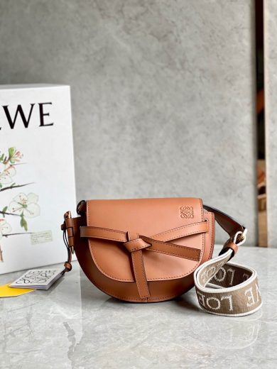 LOEWE SMALL GATE BAG IN SOFT CALFSKIN AND JACQUARD TAN 0010623395