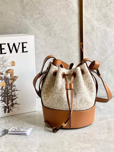 LOEWE SMALL BALLOON BAG IN ANAGRAM JACQUARD AND CALFSKIN ECRU TAN 0010553394