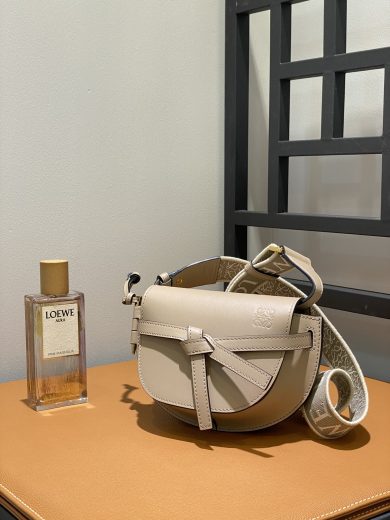LOEWE SMALL GATE BAG IN SOFT CALFSKIN AND JACQUARD SAND 0010643401