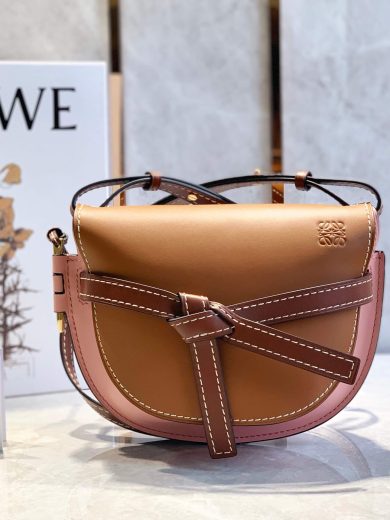 LOEWE SMALL GATE BAG IN SOFT CALFSKIN TAN MEDIUM PINK 32154T20