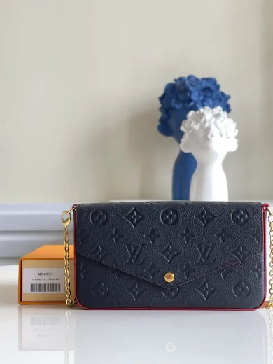 LOUIS VUITTON FÉLICIE POCHETTE BAG SUPPLE GRAINED COWHIDE LEATHER BLUE M64099