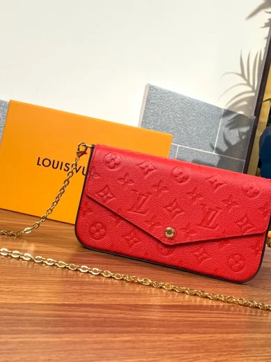 LOUIS VUITTON FÉLICIE POCHETTE BAG SUPPLE GRAINED COWHIDE LEATHER RED M63700