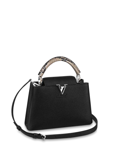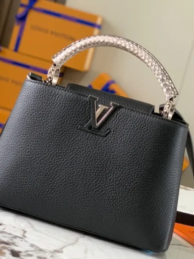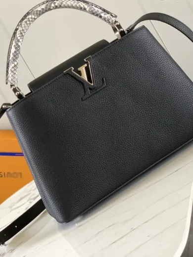 LOUIS VUITTON CAPUCINES MM BAG PYTHON HANDLE TAURILLON LEATHER BLACK N92800
