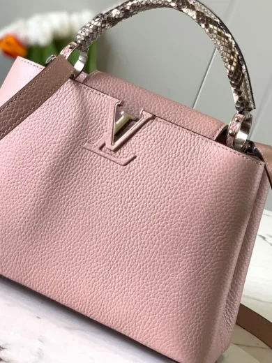 LOUIS VUITTON CAPUCINES BB HANDBAG PYTHON HANDLE TAURILLON LEATHER PINK N92042