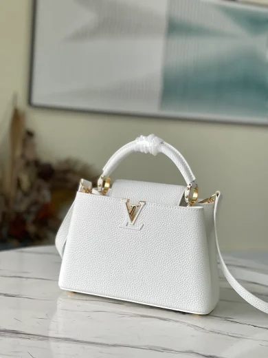 LOUIS VUITTON CAPUCINES BB HANDBAG TAURILLON LEATHER SNOW WHITE M55832