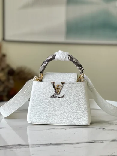 LOUIS VUITTON CAPUCINES MINI BAG PYTHON HANDLE TAURILLON LEATHER WHITE N98477