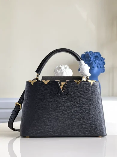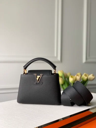 LOUIS VUITTON CAPUCINES MINI HANDBAG TAURILLON LEATHER BLACK M56071