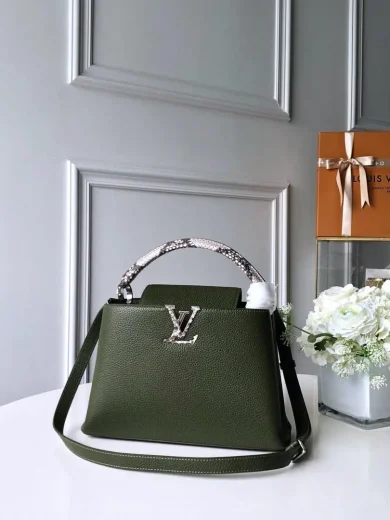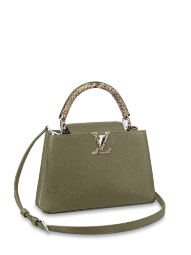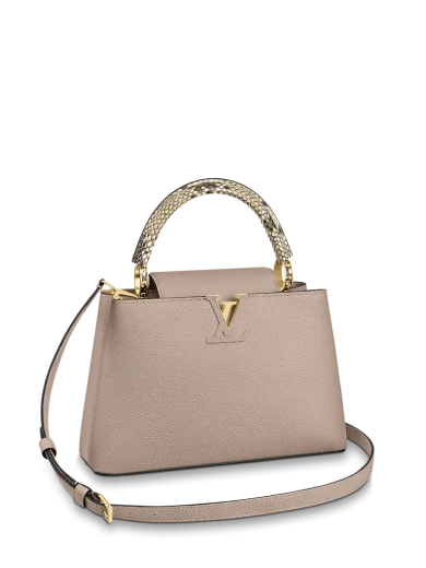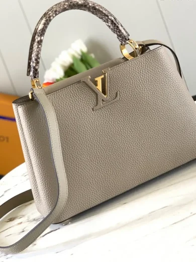 LOUIS VUITTON CAPUCINES MM BAG PYTHON HANDLE TAURILLON LEATHER GRAY N92802