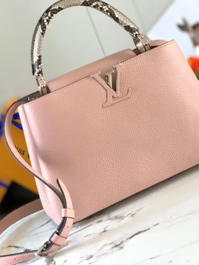 LOUIS VUITTON CAPUCINES MM BAG PYTHON HANDLE TAURILLON LEATHER PINK N92801