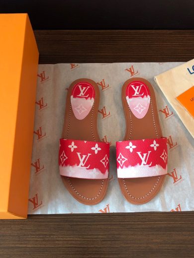 LOUIS VUITTON LV ESCALE LOCK IT FLAT MULE RED 1A7TNC