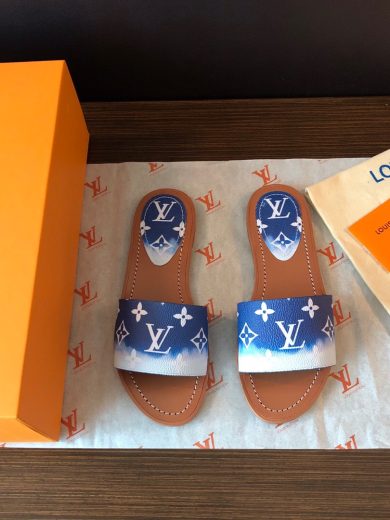 LOUIS VUITTON LV ESCALE LOCK IT FLAT MULE BLUE 1A7TO6