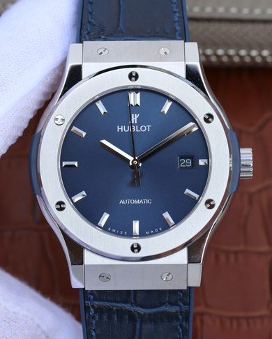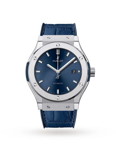 HUBLOT CLASSIC FUSION BLUE AUTOMATIC TITANIUM WITH BLUE LEATHER WATCH 542.OX.7180.LR