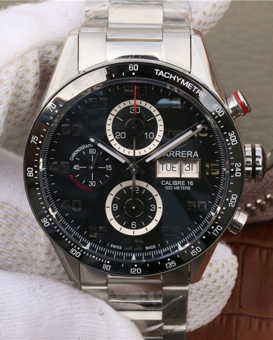TAG HEUER CARRERA CALIBRE 16 DAY DATE 43 STAINLESS STEE BLACK BRACELET CV2A1R.BA0799