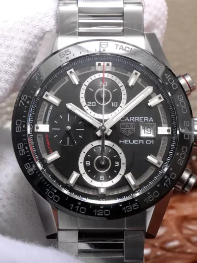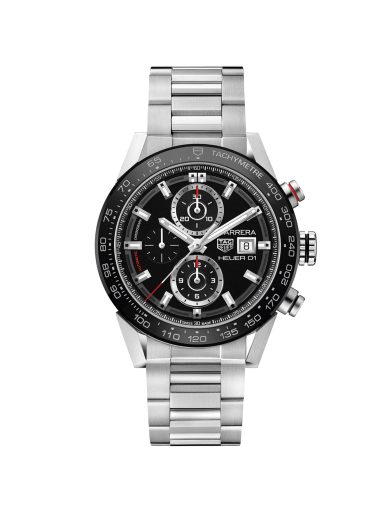 TAG HEUER CARRERA CALIBRE HEUER 01 43 STAINLESS STEEL BLACK BRACELET CAR201Z.BA0714