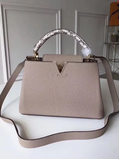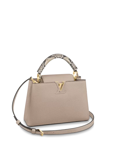 LOUIS VUITTON CAPUCINES BB HANDBAG PYTHON HANDLE TAURILLON LEATHER GALET GRAY N92041