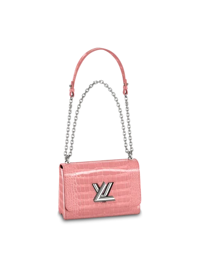 LOUIS VUITTON TWIST MM HANDBAG ALLIGATOR LEATHER ROSE PINK N94395