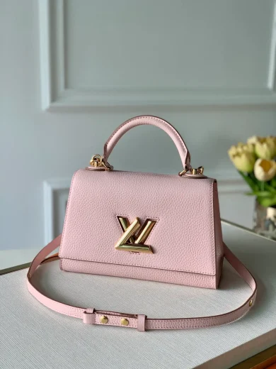 LOUIS VUITTON TWIST ONE HANDLE PM HANDBAG TAURILLON LEATHER EAU DE ROSE PINK M57584