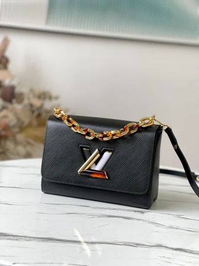 LOUIS VUITTON TWIST MM HANDBAG EPI GRAINED LEATHER BLACK M58715