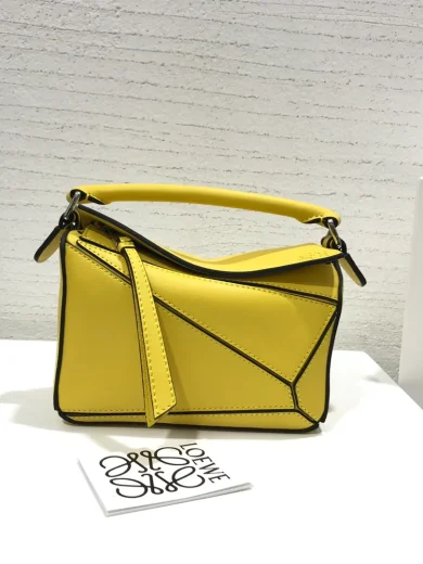 LOEWE MINI PUZZLE BAG IN CLASSIC CALFSKIN LIME YELLOW 322.30.U95-4801