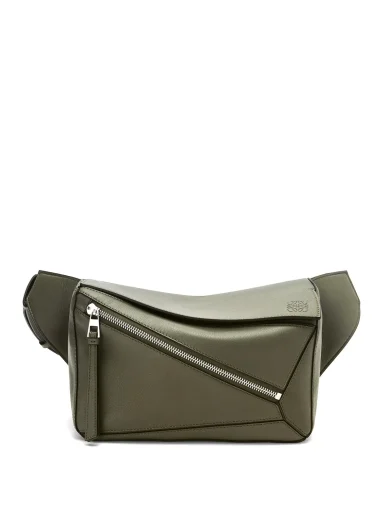 LOEWE SMALL PUZZLE BUMBAG IN CLASSIC CALFSKIN KHAKI GREEN B510P35X09-4160