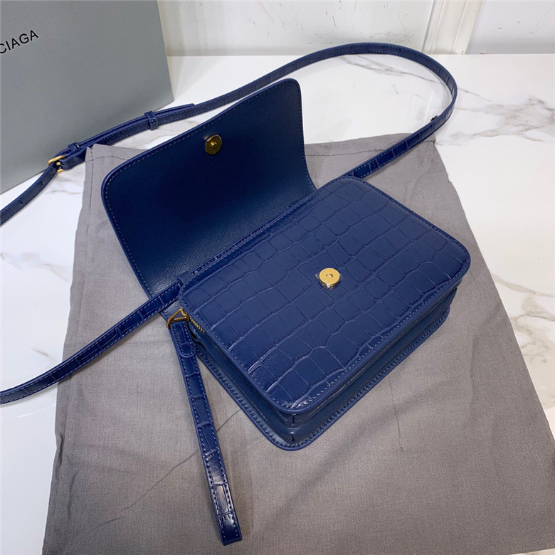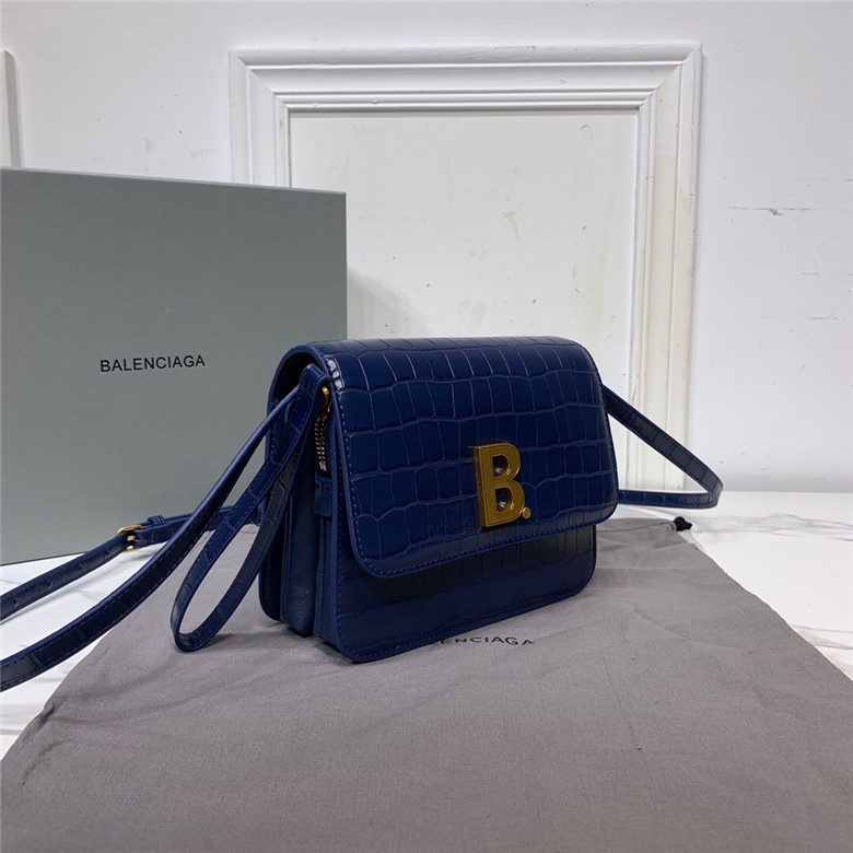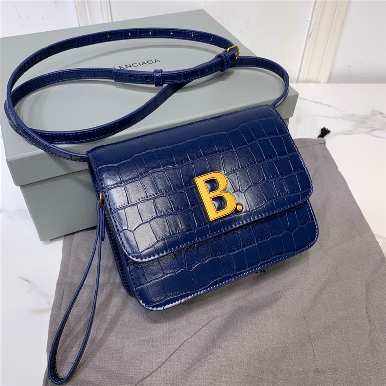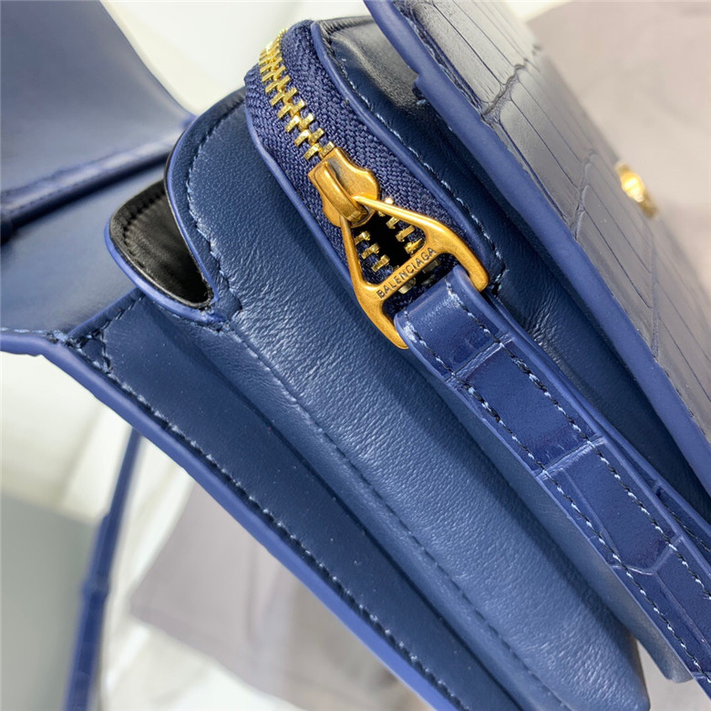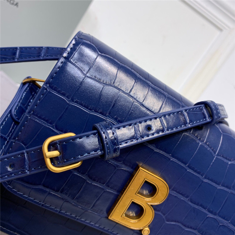 BALENCIAGA B. SMALL BAG IN BLUE SHINY CROCODILE EMBOSSED CALFSKIN 5928981LR7M4611