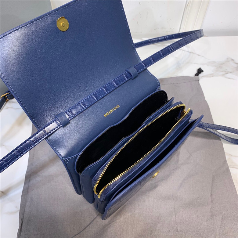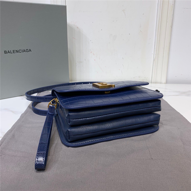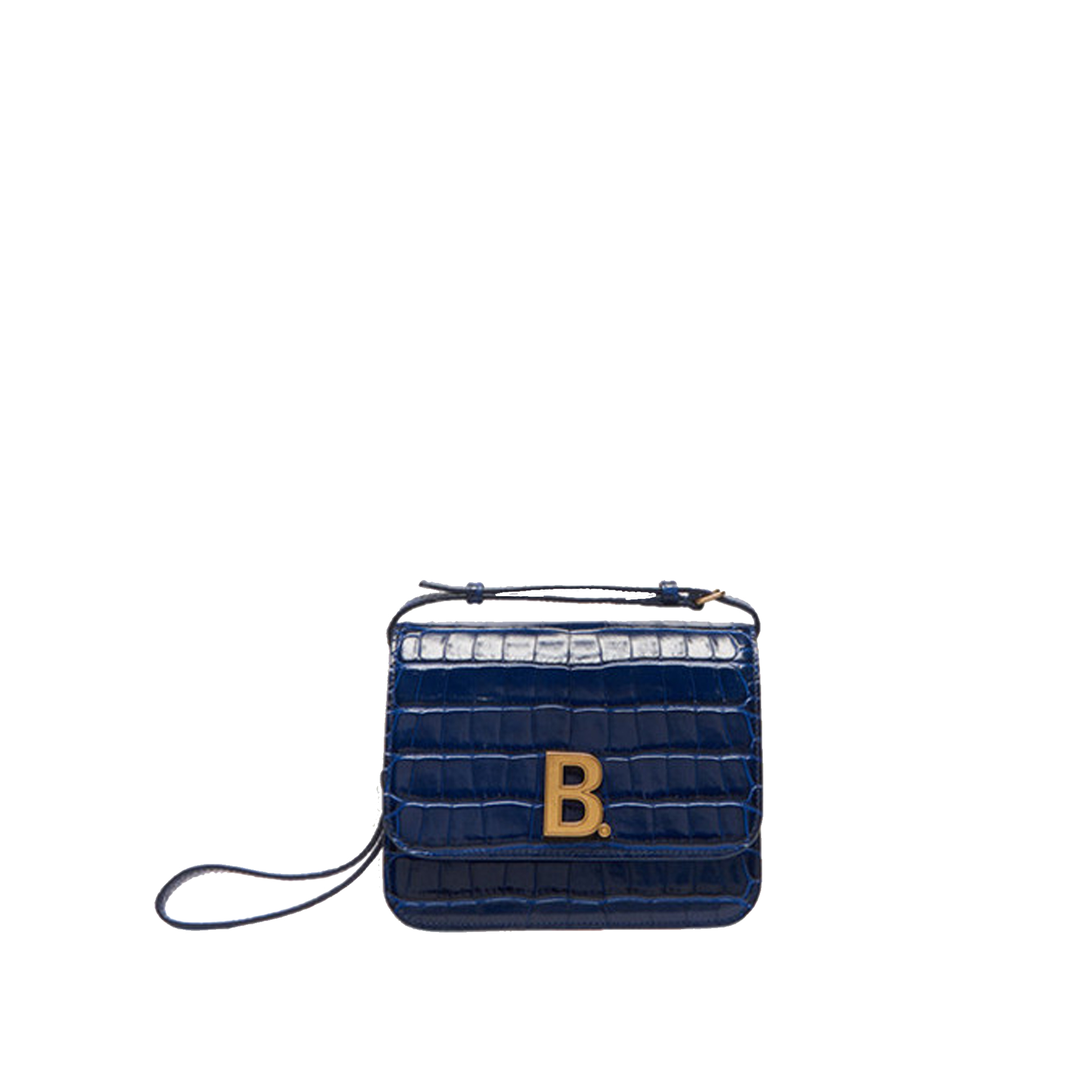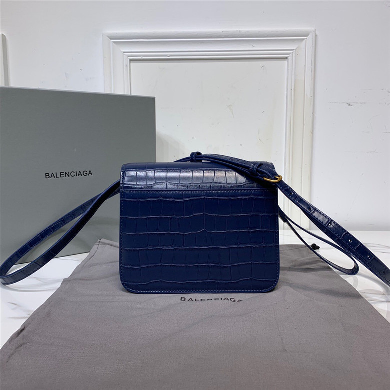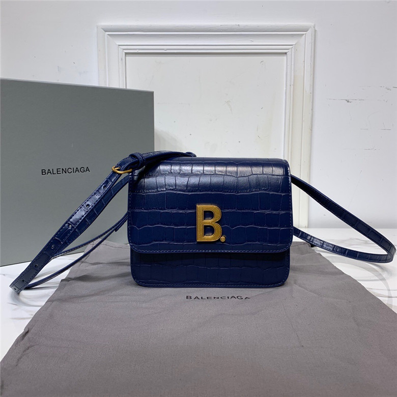 BALENCIAGA B. SMALL BAG IN BLUE SHINY CROCODILE EMBOSSED CALFSKIN 5928981LR7M4611