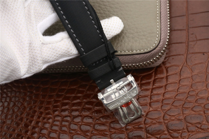 The ‘FF’ in reference 5015-1130-52 is housed in a generous 45mm stainless steel case and powered by caliber 1315, which is shielded by an amagnetic cage. The bezel is sapphire.