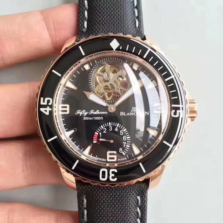 | Name: | Fifty Fathoms Tourbillon 8 Jours Red Gold / Black / Black Canvas |
