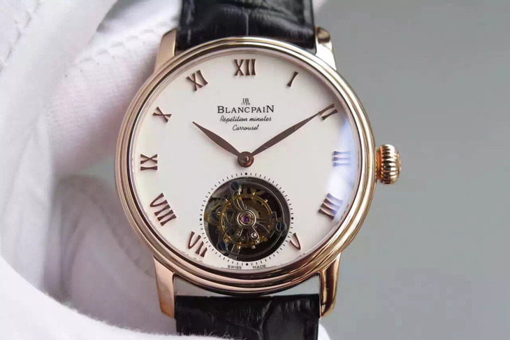 The Blancpain Le Brassus Carrousel Répétition Minutes 00232-3631-55B was introduced in 2011. Powered by caliber 232, it features a carrousel and minute repeater. While not a limited edition of 1 per se, each of these features a unique automata visisble through the case back.