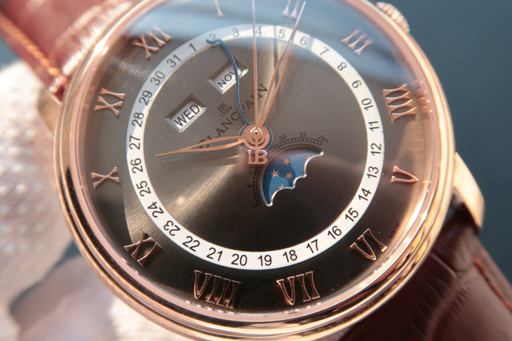 The Quantième Complet -a.k.a. Triple or Full Calendar- is a signature set of complications for Blancpain, especially in combination with the humanoid moon on the moonphase disc. In the present configuration, it is presented in a contemporary 40mm case.