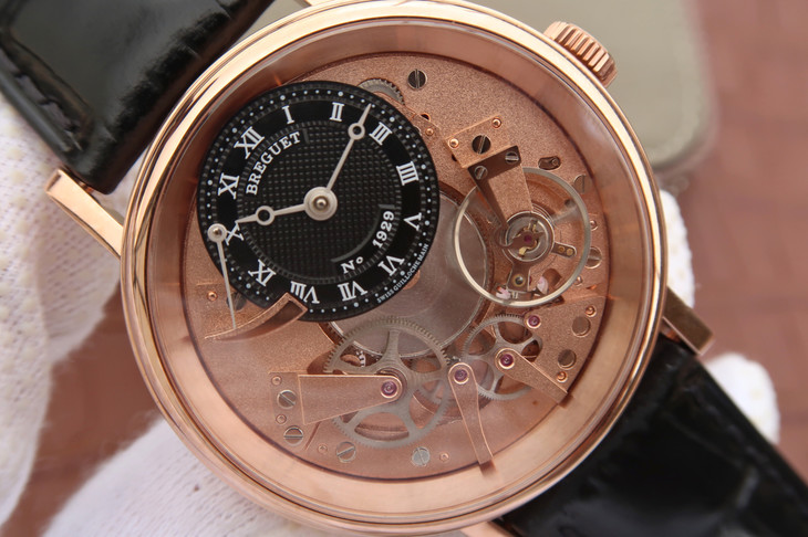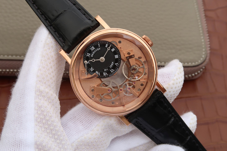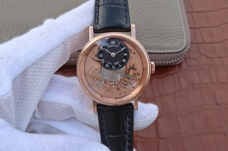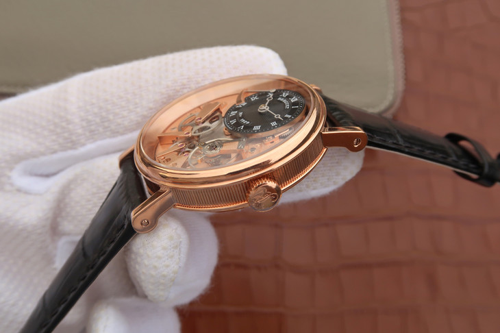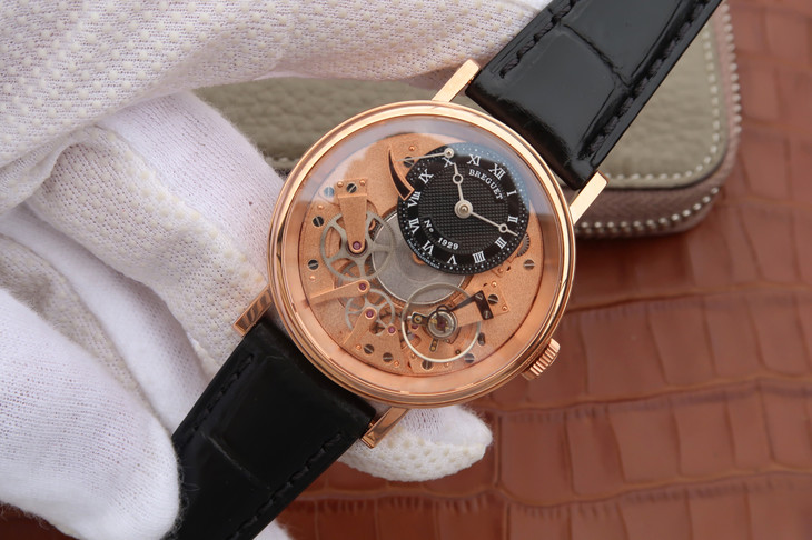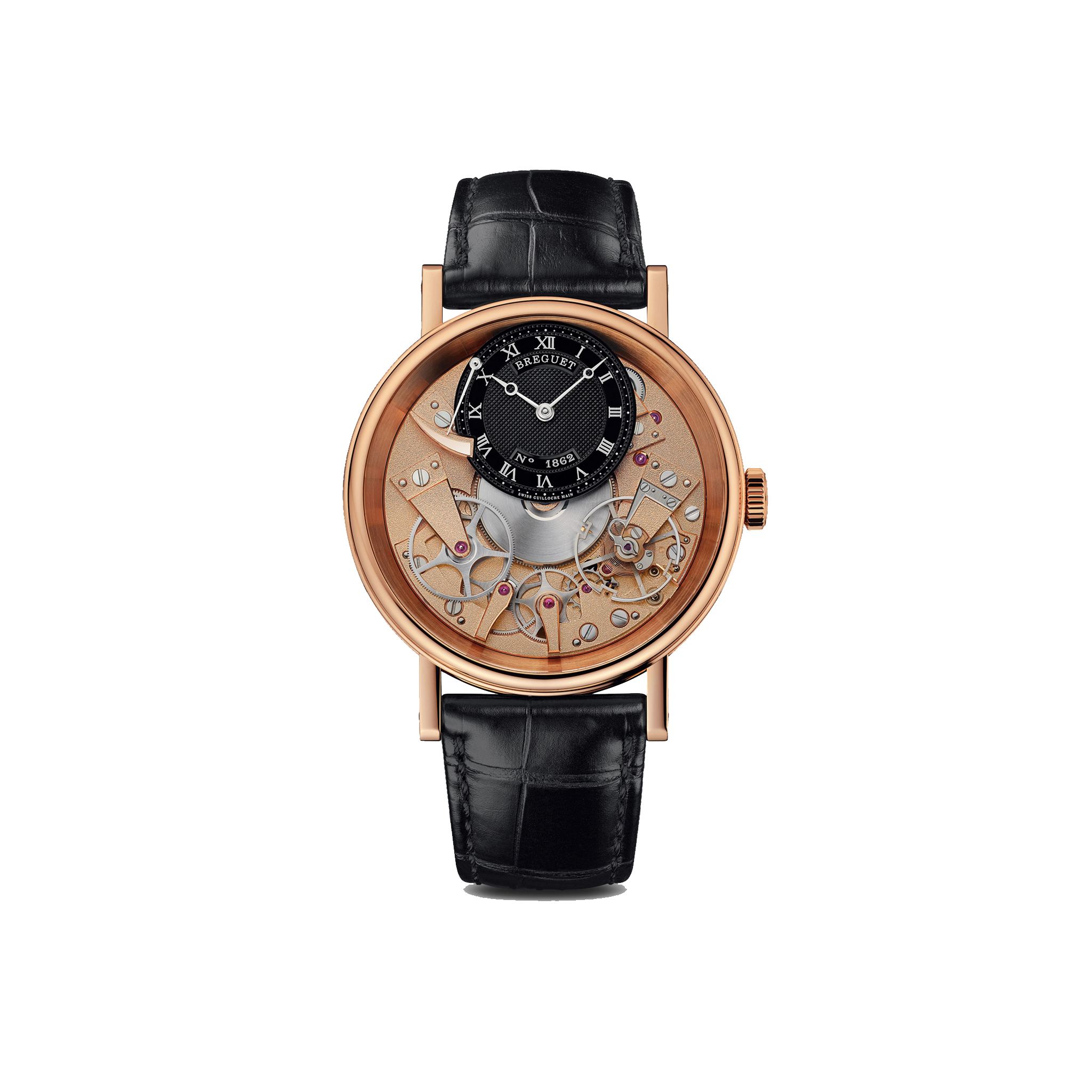 Reference 7057BR/R9/9W6 has a rose gold case and a black dial.