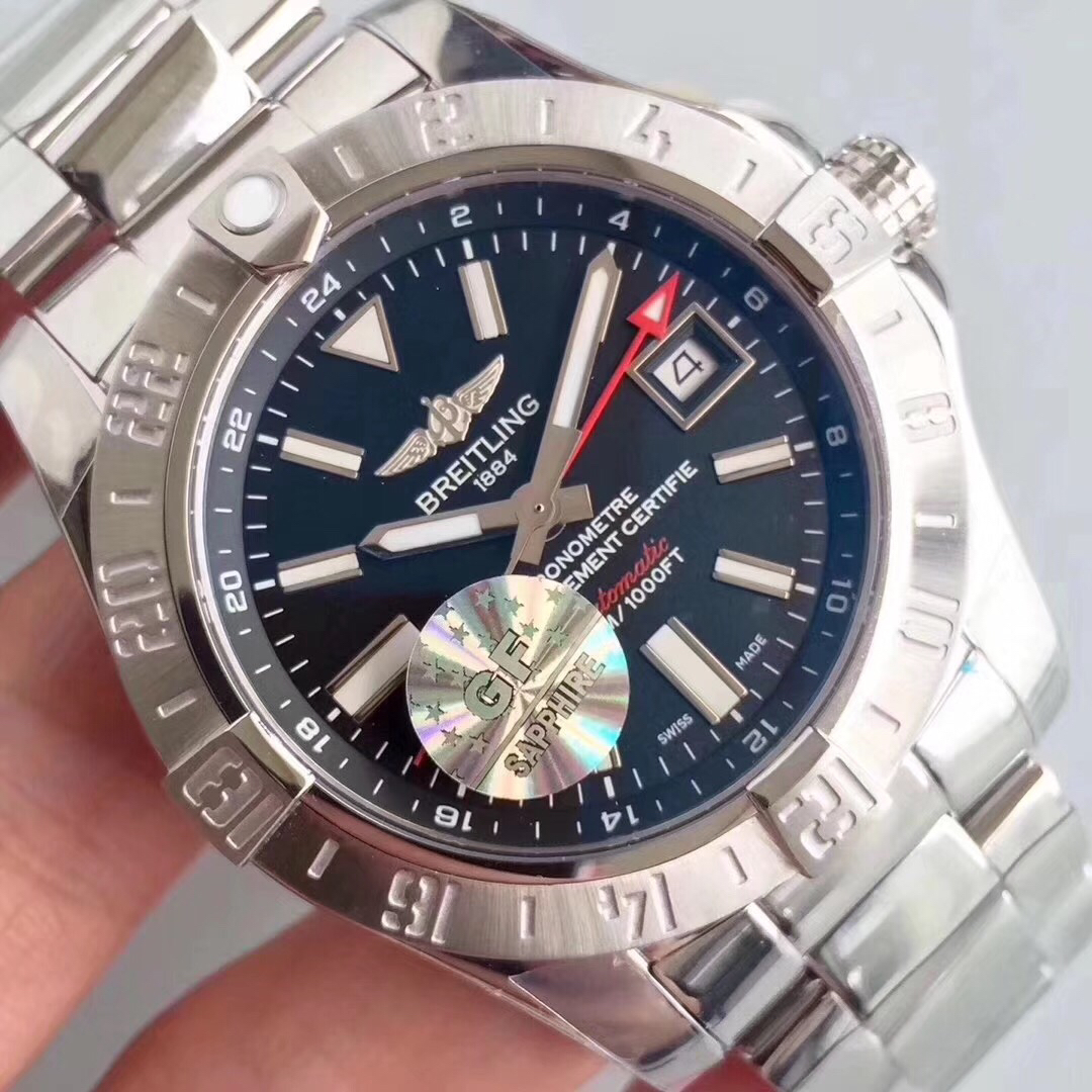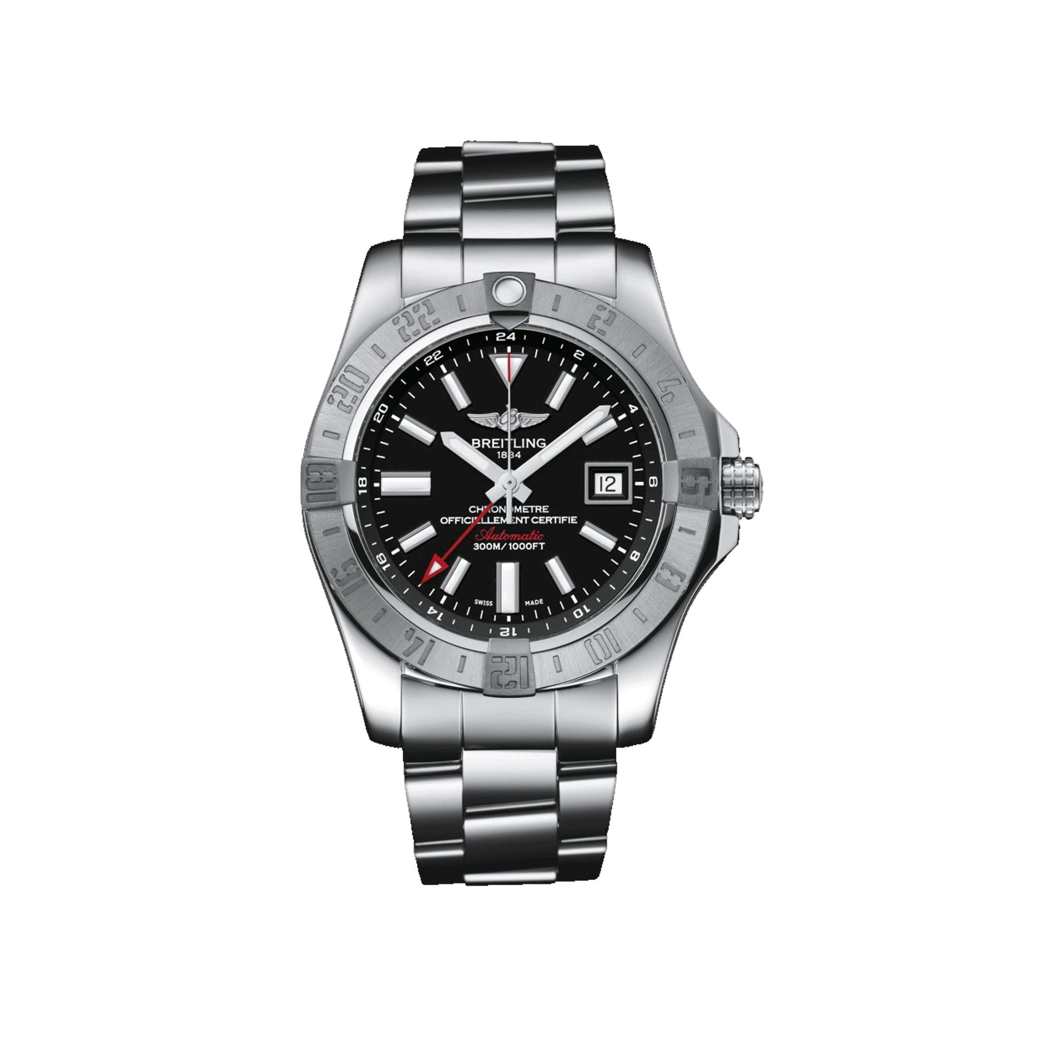 The Avenger II GMT stands out by its ultra-practical 24-hour second timezone display, complemented by a bidirectional rotating bezel enabling a third timezone reading. The officially chronometer-certified selfwinding movement is protected by an ultra-sturdy steel case water-resistant to 300 m (1,000 ft). The efficiency of the controls is guaranteed by a solid crown with a non-slip grip.
