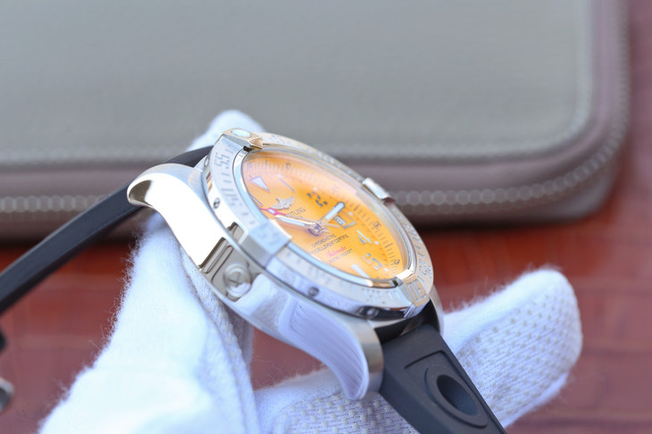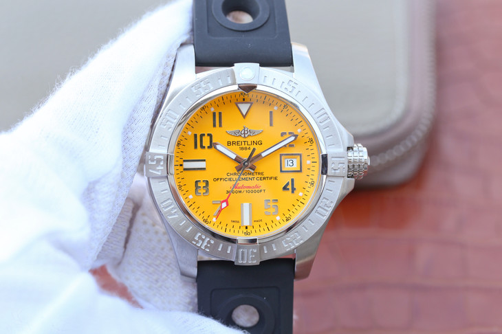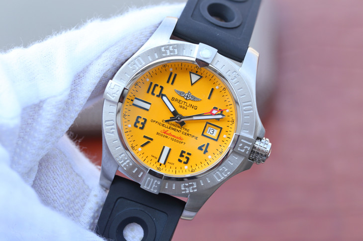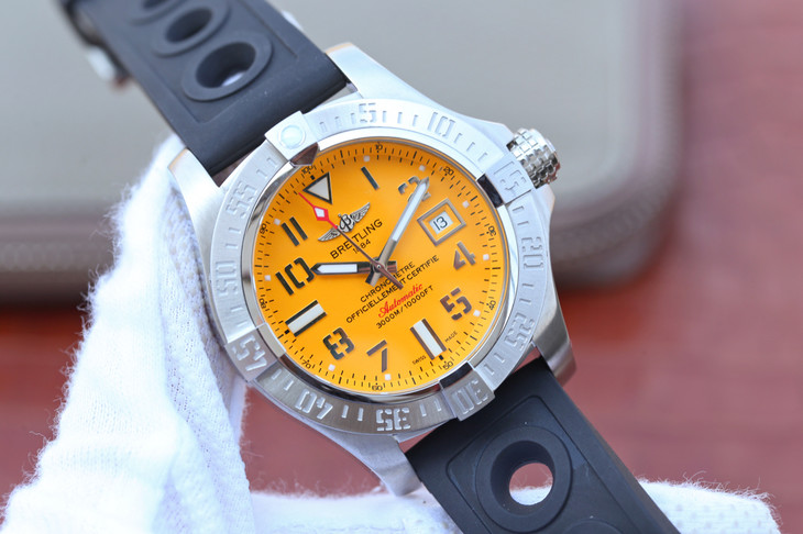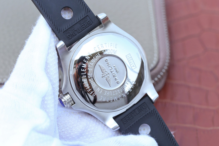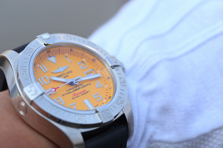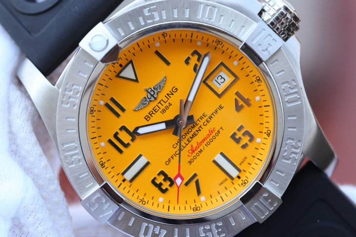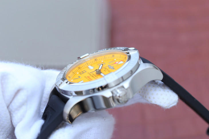 With the Avenger Seawolf, Breitling has accomplished a major technical exploit by producing a professional diver’s watch that is water-resistant to 3,000 meters (10,000 ft/300 bars). Built on the sturdy Avenger platform, the Seawolf is also a functional success, since its dimensions have been kept very reasonable and offer perfect ergonomics, despite the technical constraints imposed by the need to withstand pressure of 300 bars. To achieve this, Breitling used numerical simulations to develop perfect geometry for the case. The Seawolf also has a safety valve enabling it to balance the differences in pressure inside and outside the case. As soon as internal overpressure reaches approximately 3 bars, the valve automatically evacuates the helium built up during prolonged stays at great depths and thus avoids the case exploding.