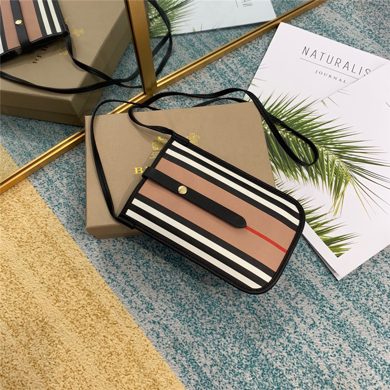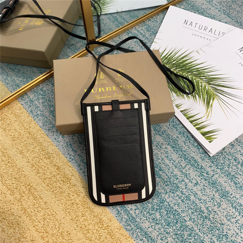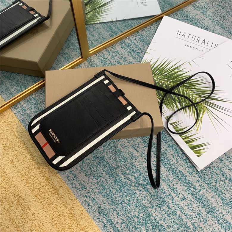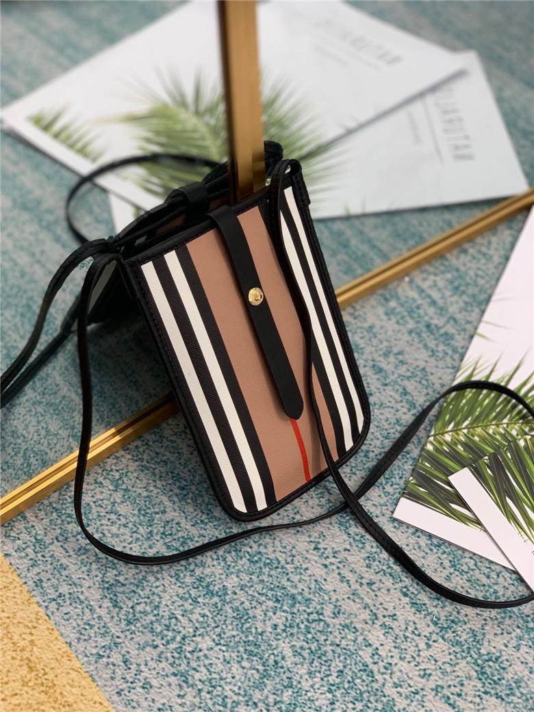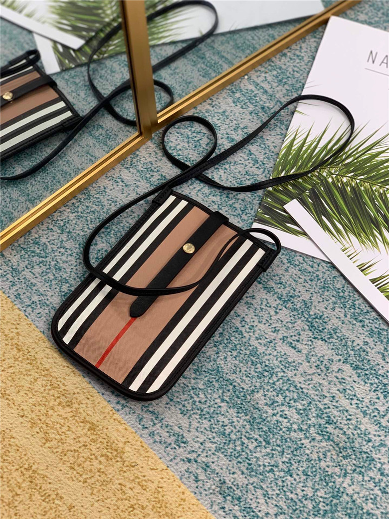 BURBERRY ICON STRIPE E-CANVAS ANNE PHONE CASE WITH STRAP 80260021