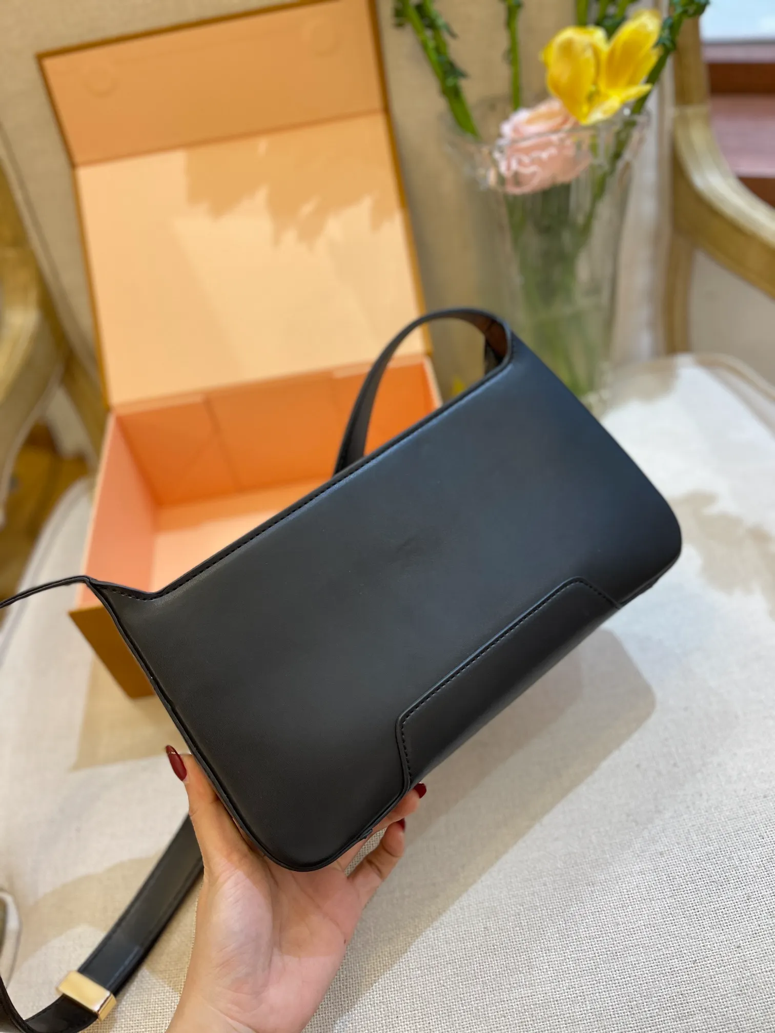 - Polished metal hardware