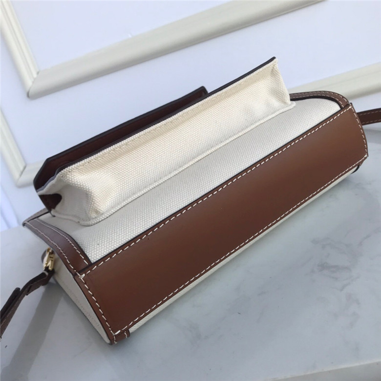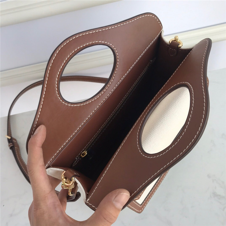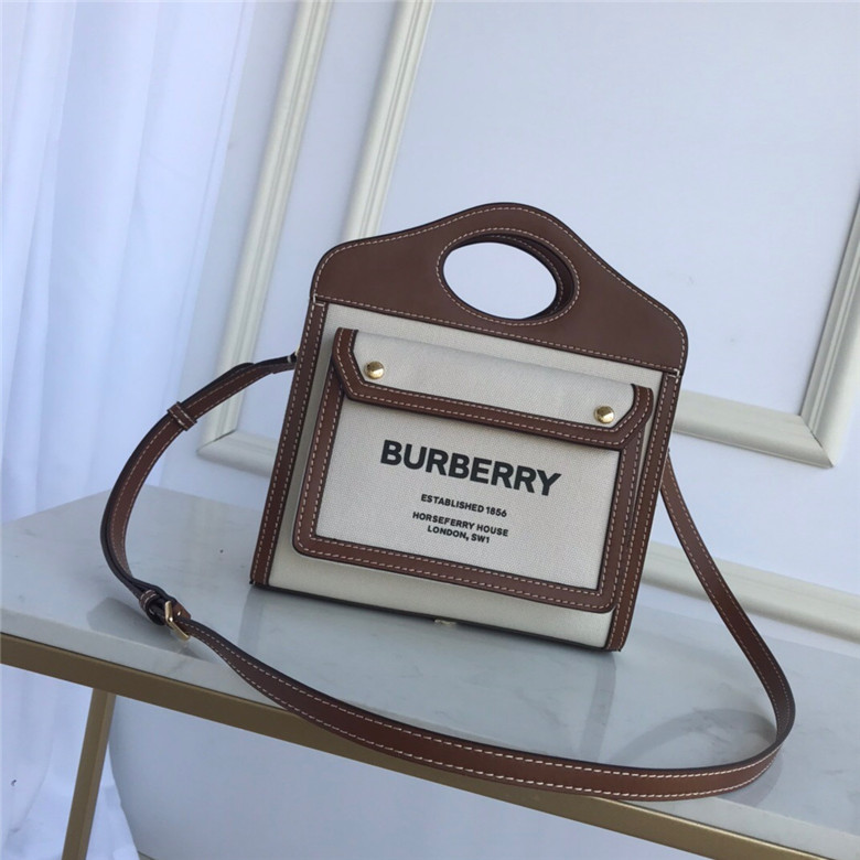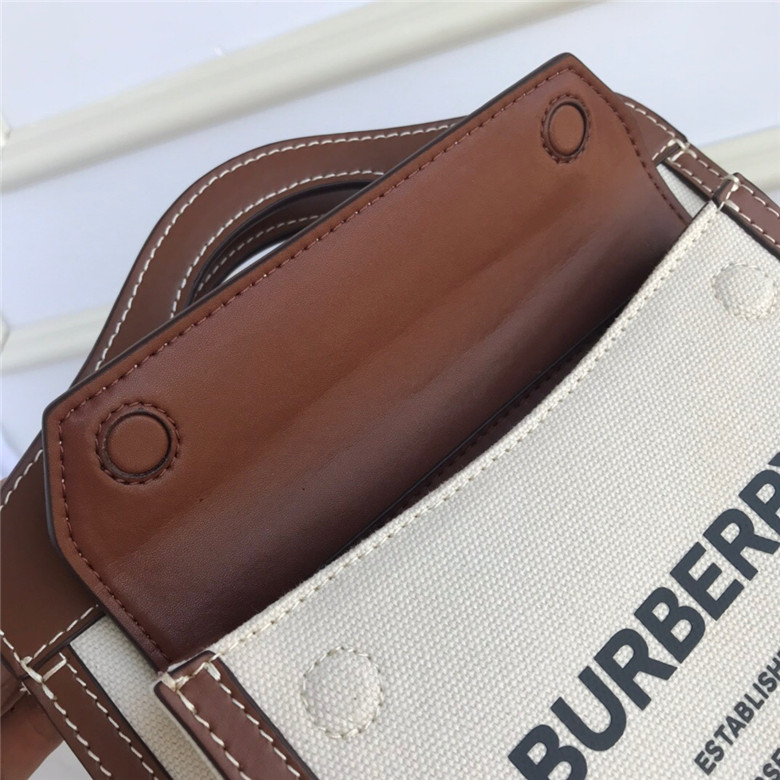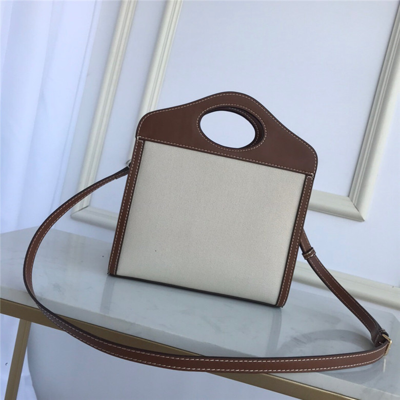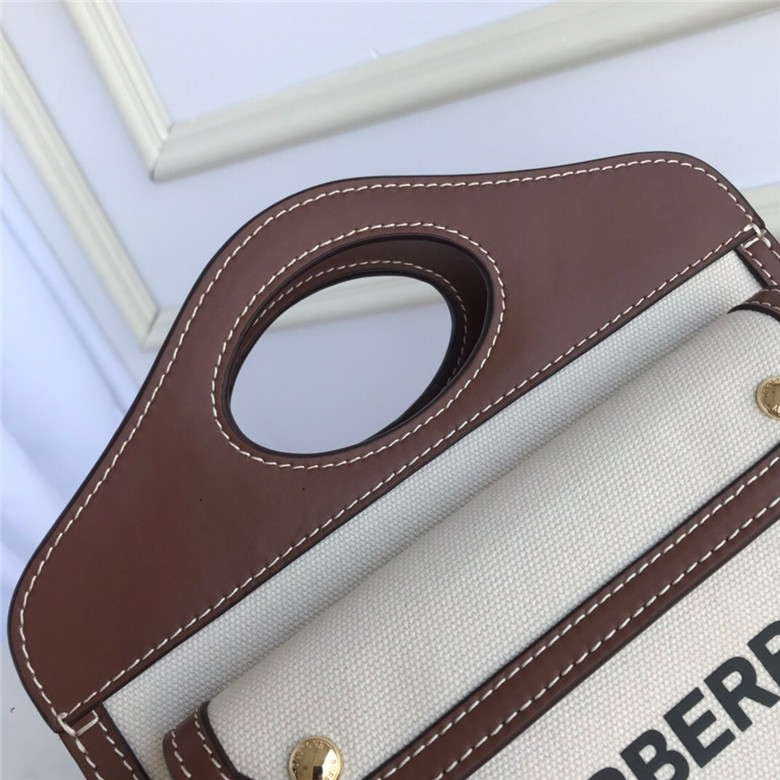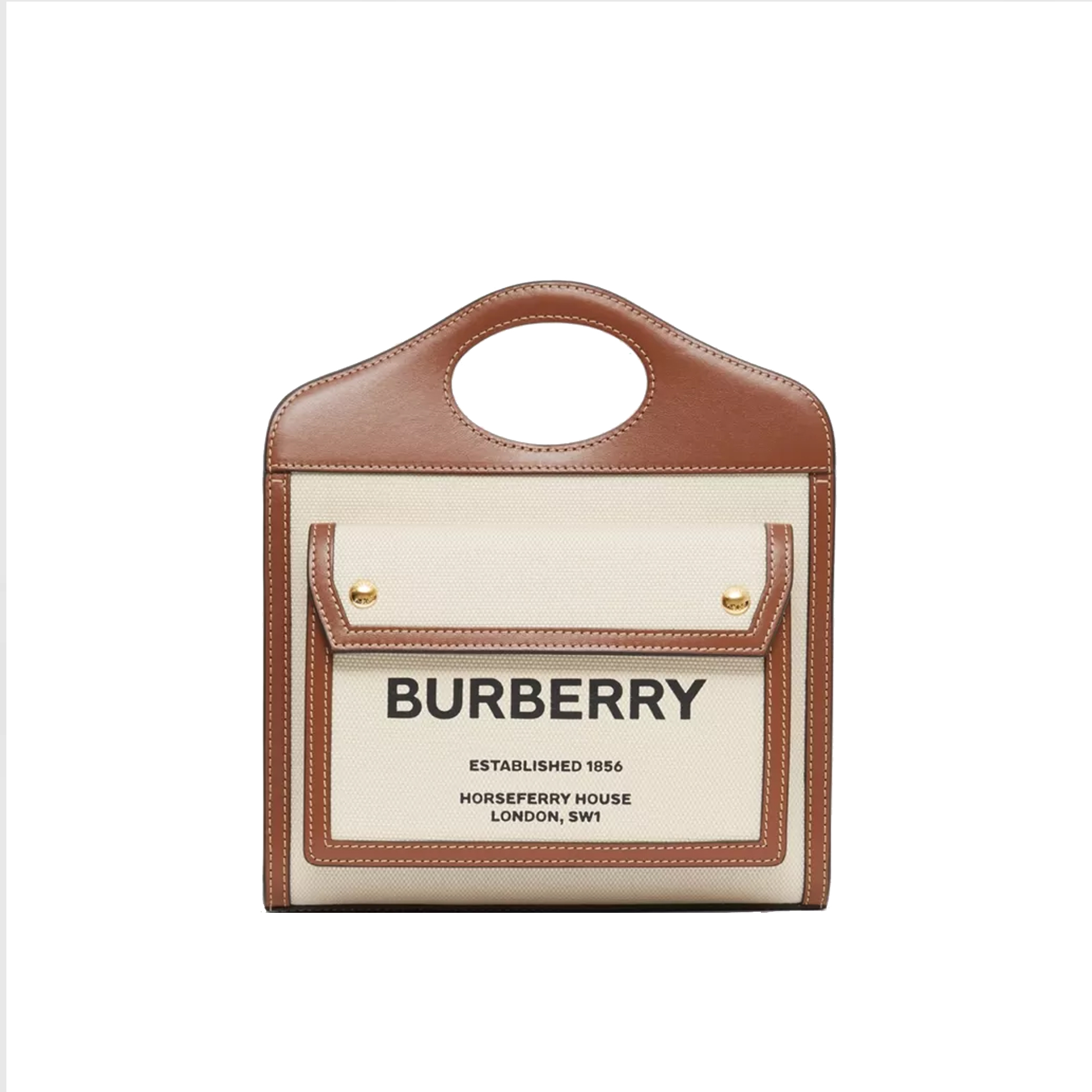 - An archive-inspired tote in canvas and topstitched leather, featuring a front pocket stamped with our logo graphic. Carry by the reinforced top handles or detachable shoulder strap.
