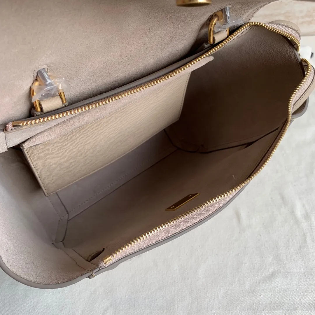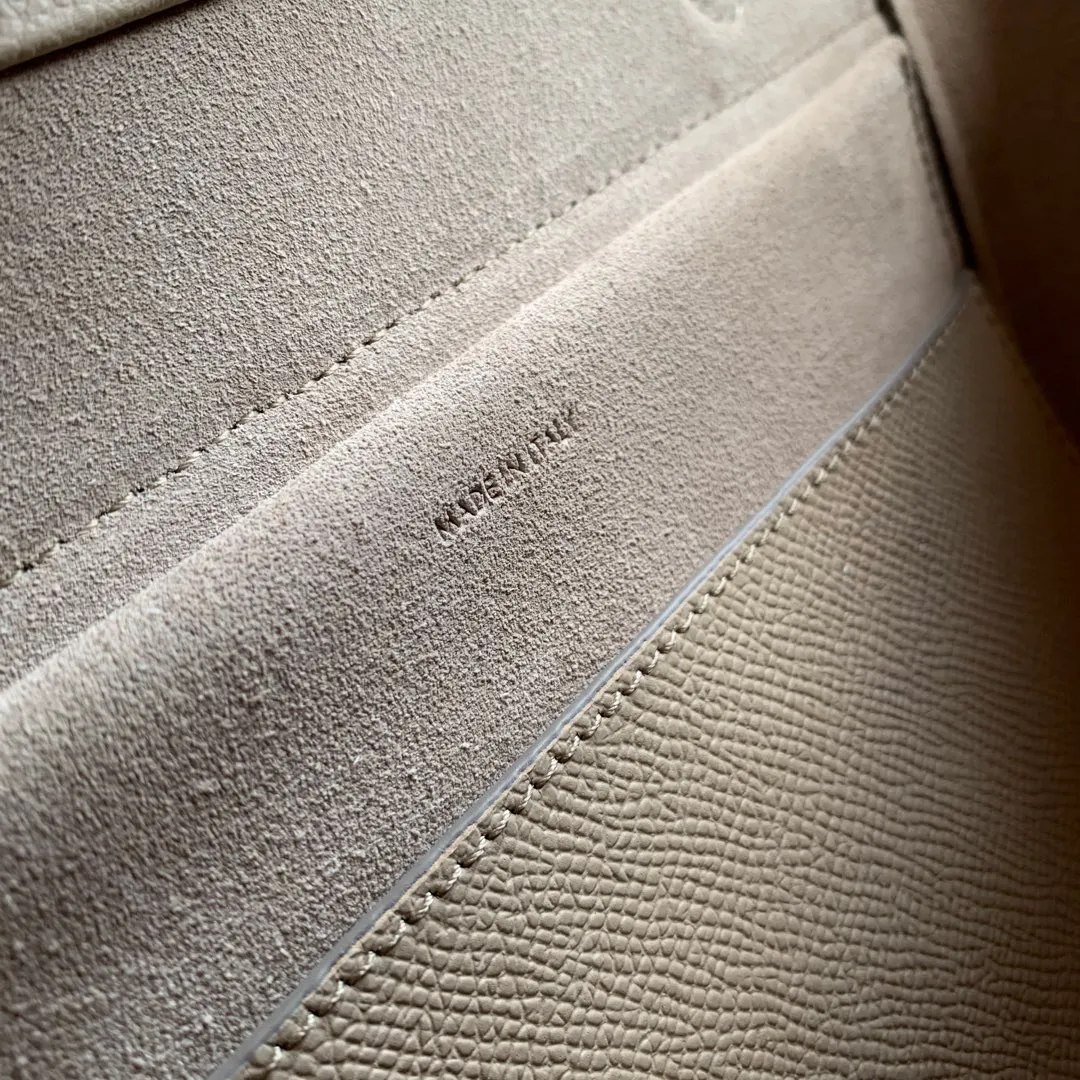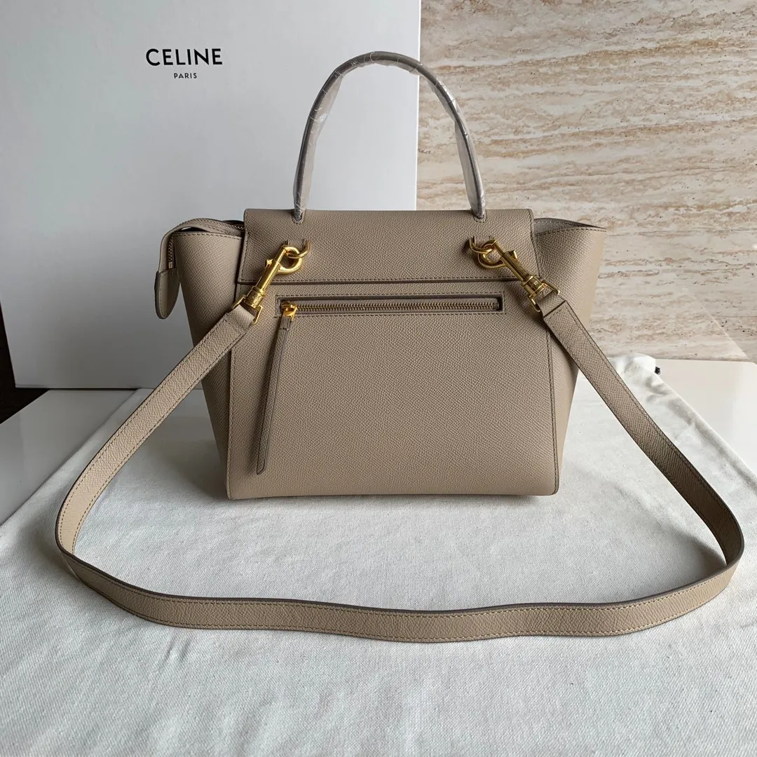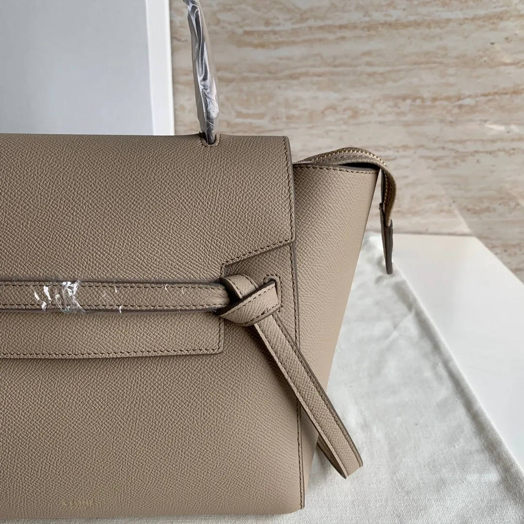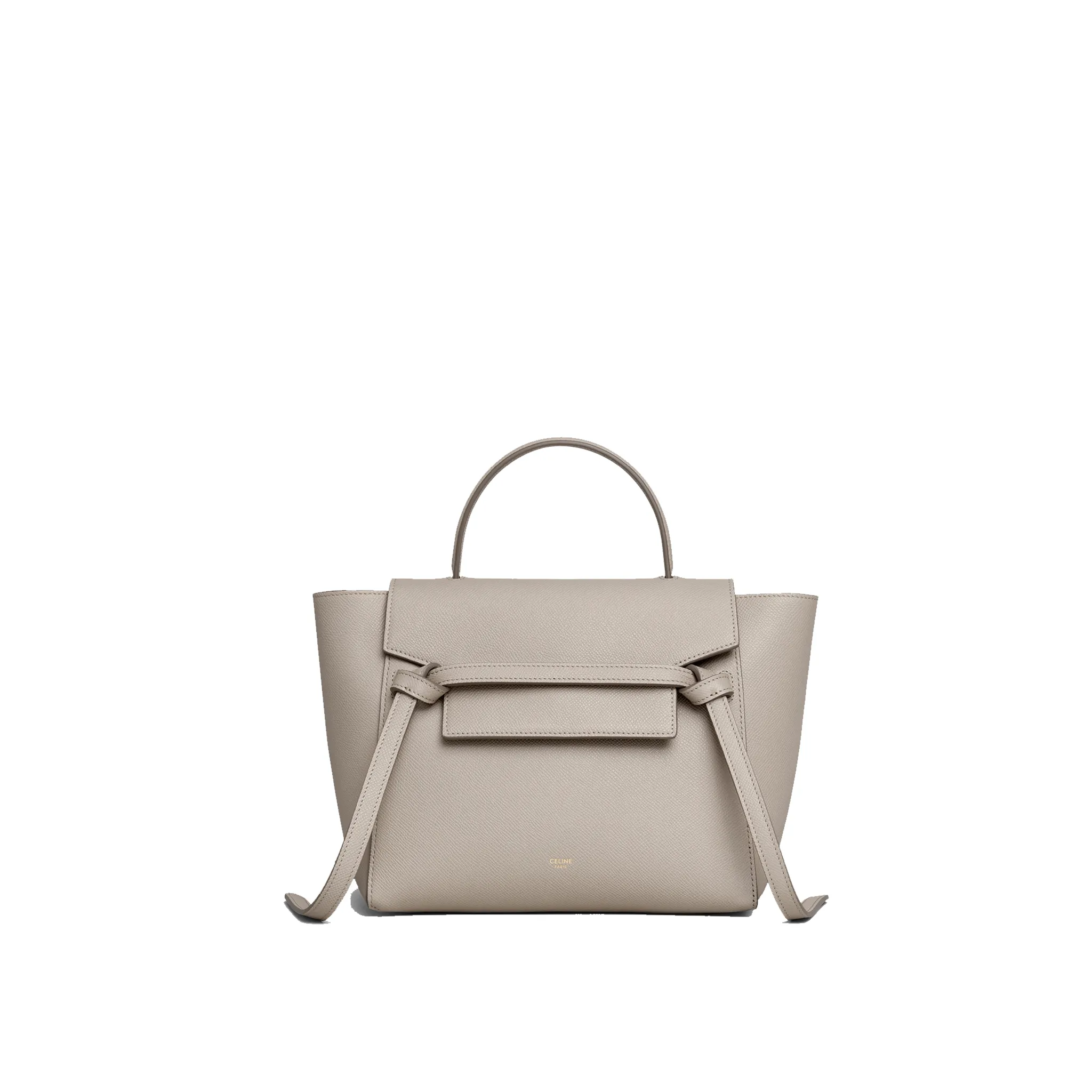 Micro Belt Bag In Grained Calfskin With A Leather Handle, A Removable Shoulder Strap, And A Zipped Outer Pocket On The Back. The Bag Closes Two Ways: Top Flap And Zipper.