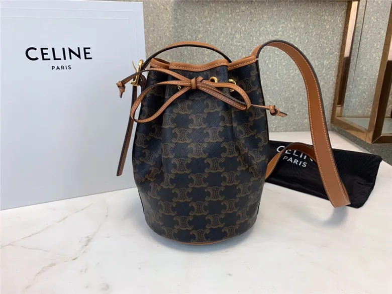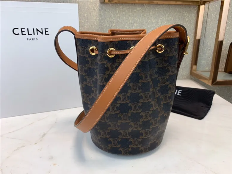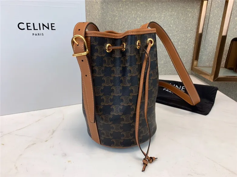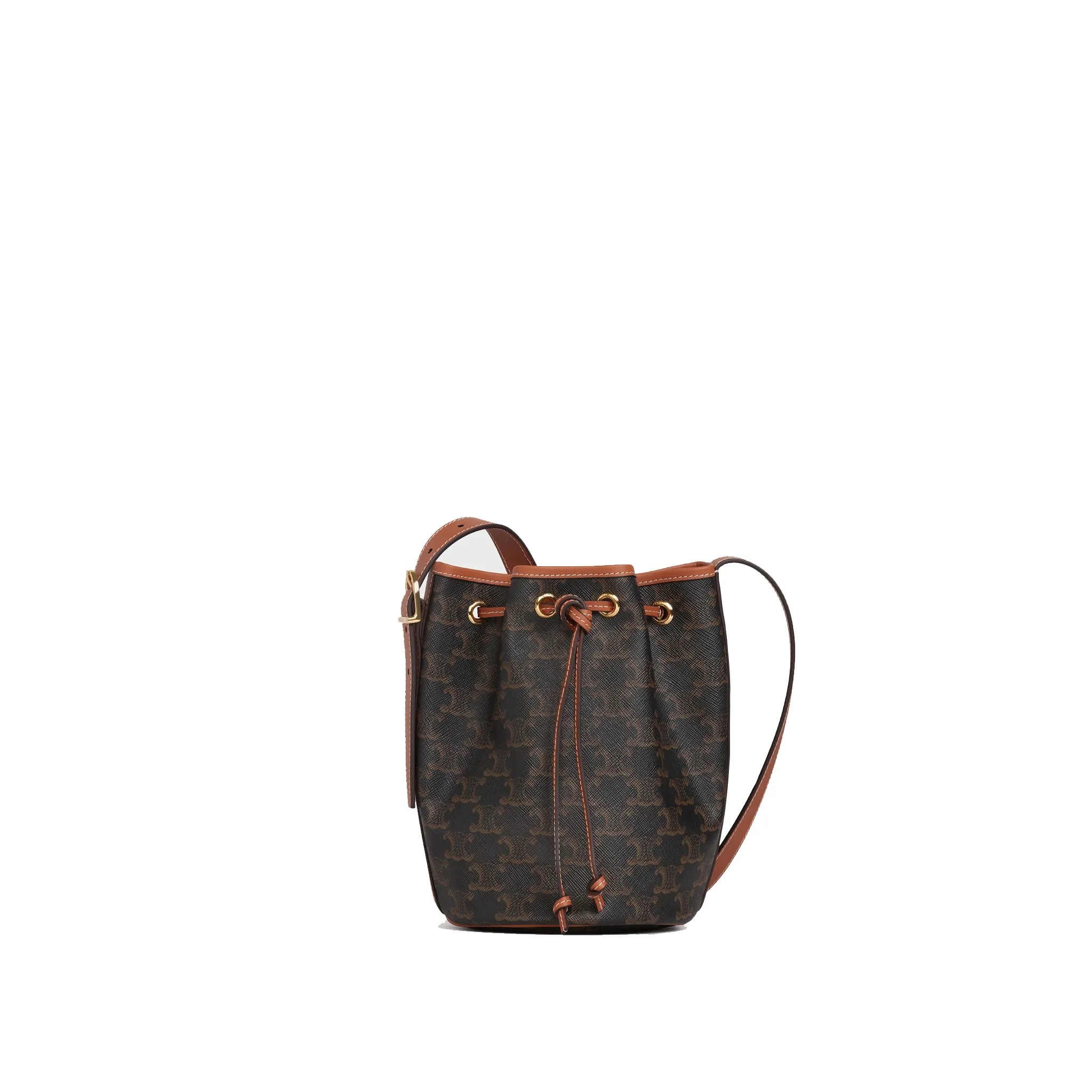 Small Bucket Bag In Triomphe Canvas, With An Adjustable Shoulder Strap And Leather Drawstring Closure.