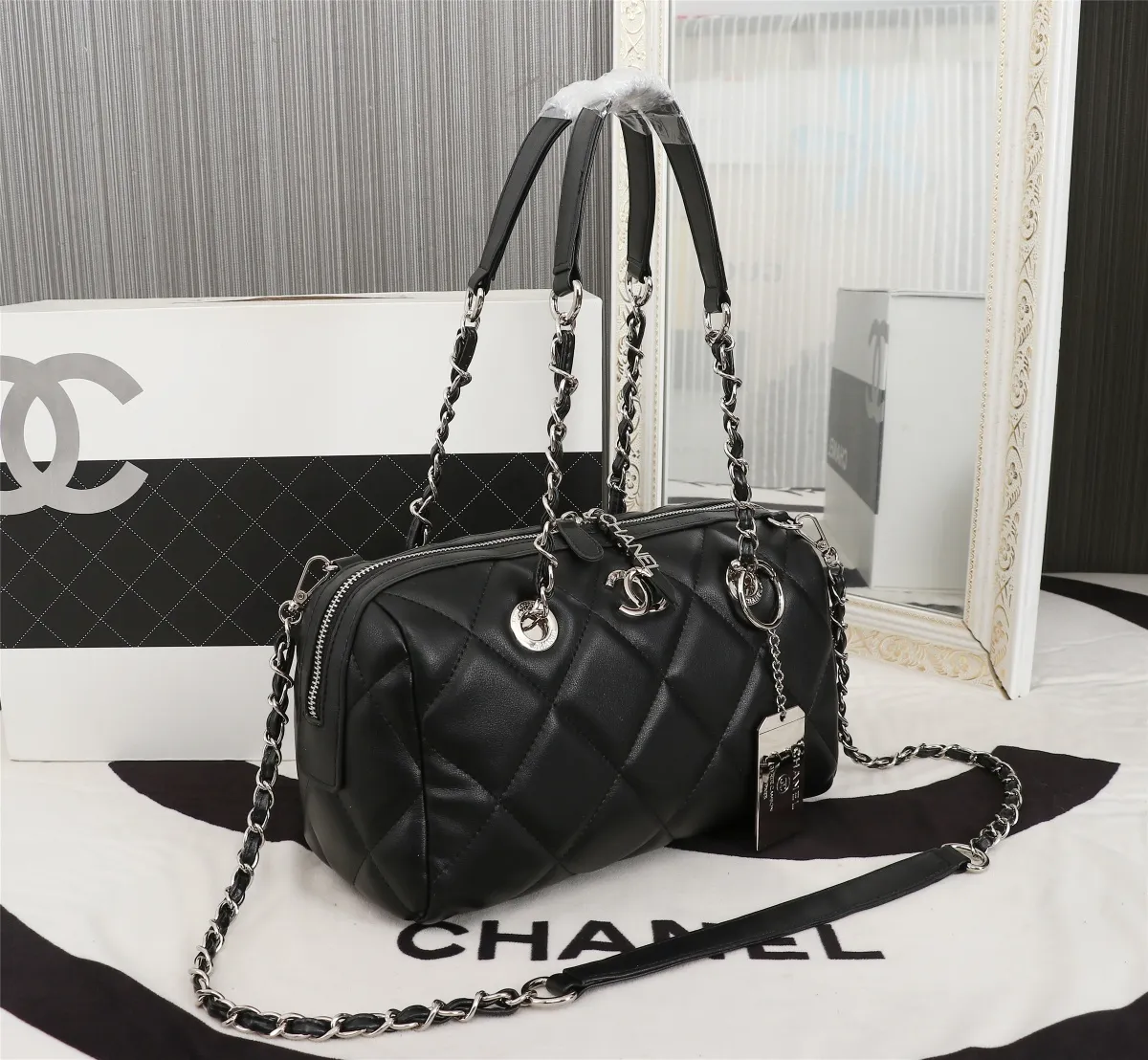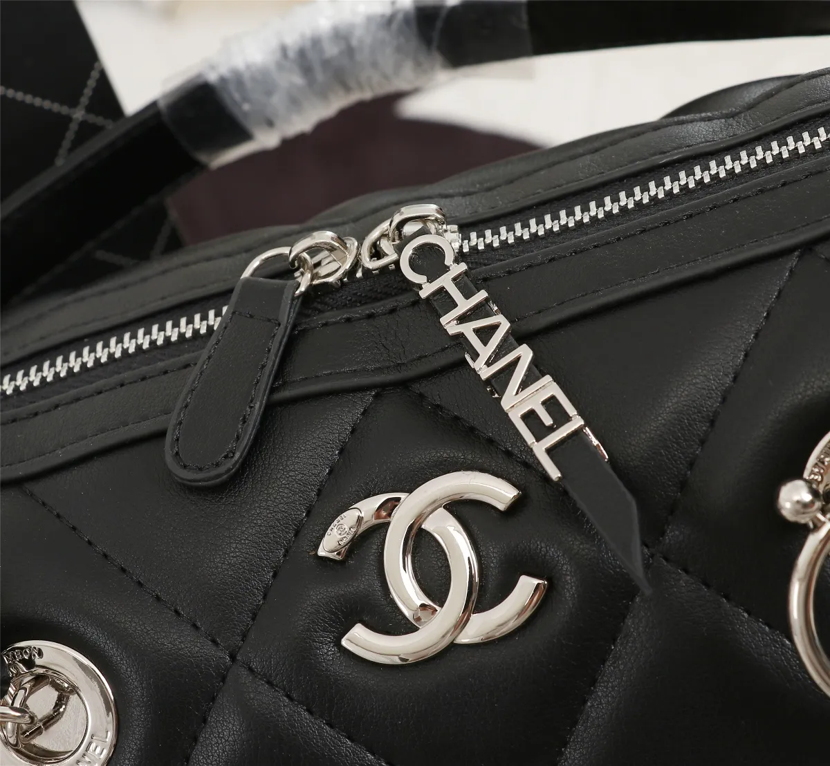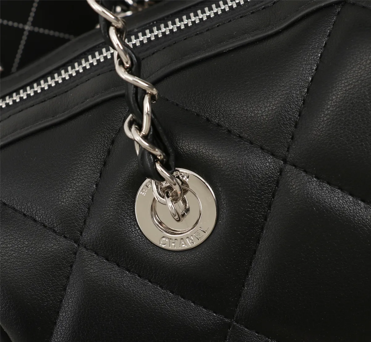 CHANEL BOWLING BAG CALFSKIN SILVER METAL BLACK AS1322 B01883 94305