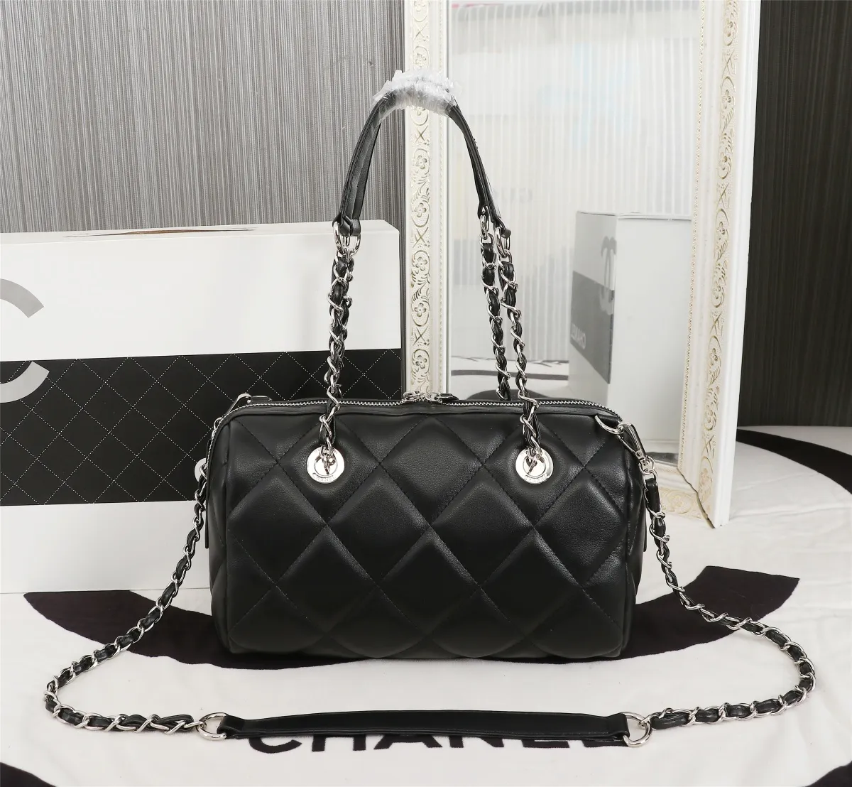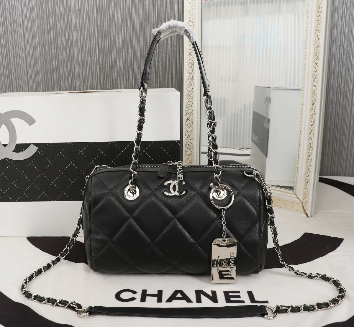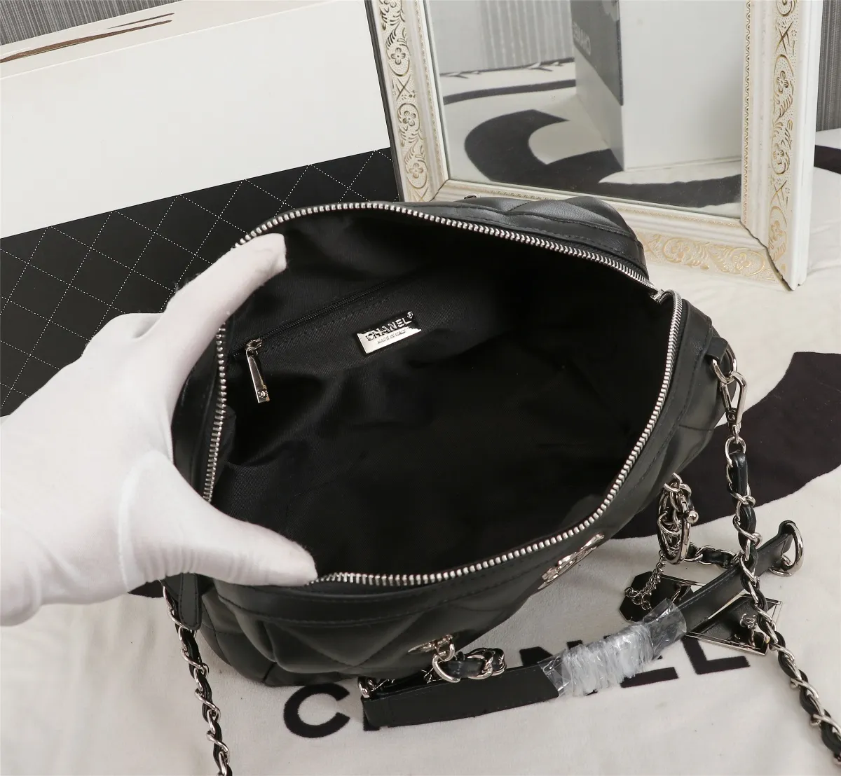 CHANEL BOWLING BAG CALFSKIN SILVER METAL BLACK AS1322 B01883 94305