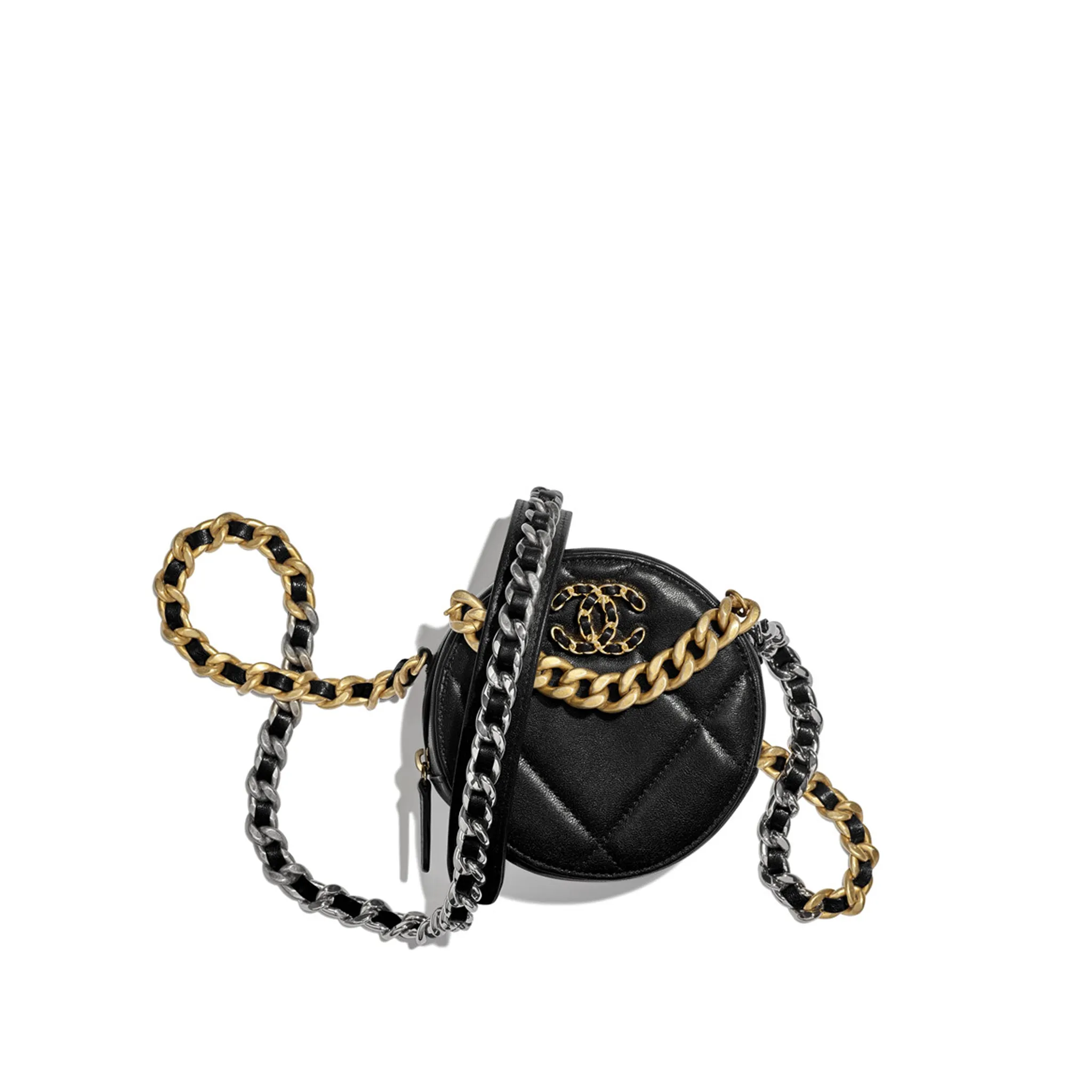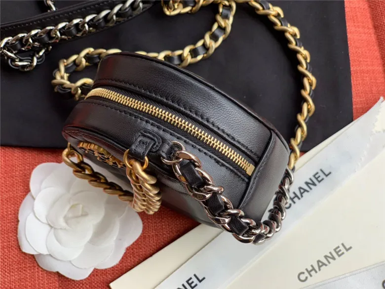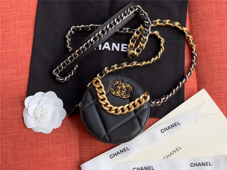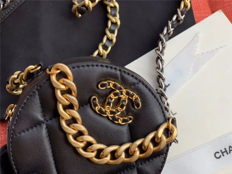 CHANEL 19 CLUTCH WITH CHAIN BAG LAMBSKIN GOLDTONE BLACK AP0945 B01901 94305
