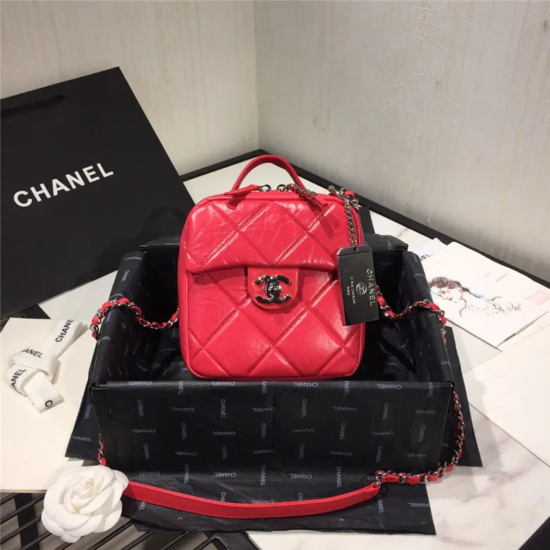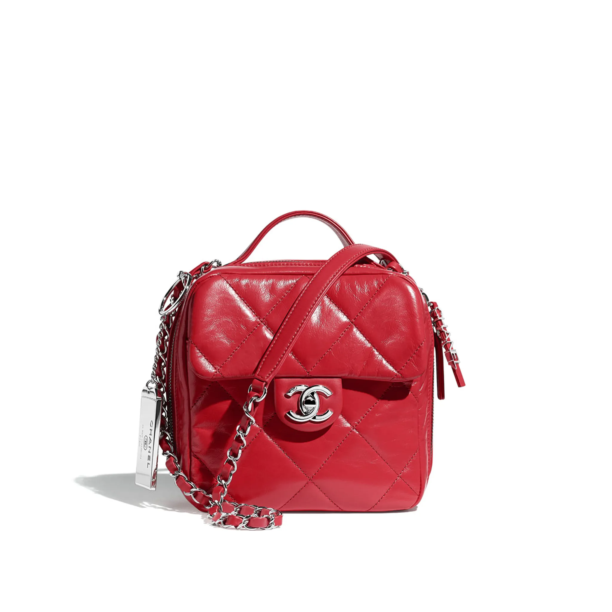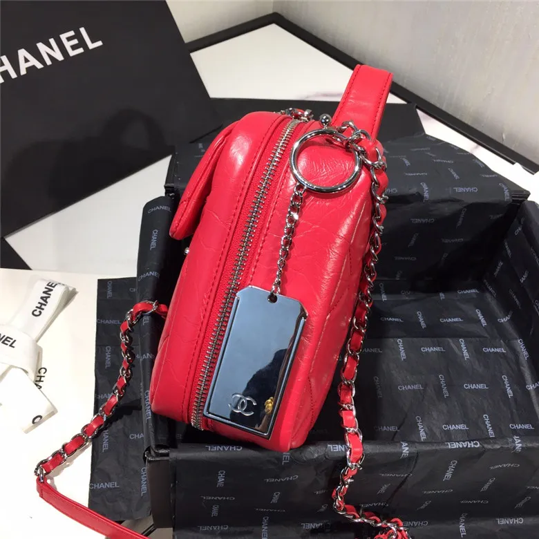 CHANEL CAMERA CASE CALFSKIN SILVERTONE METAL RED AS1323 B01883 N5332