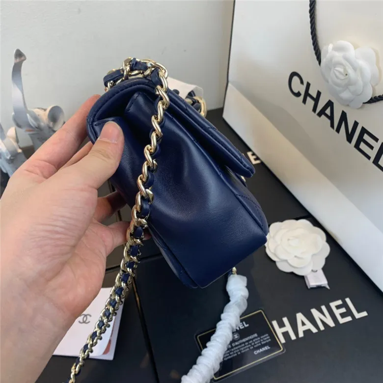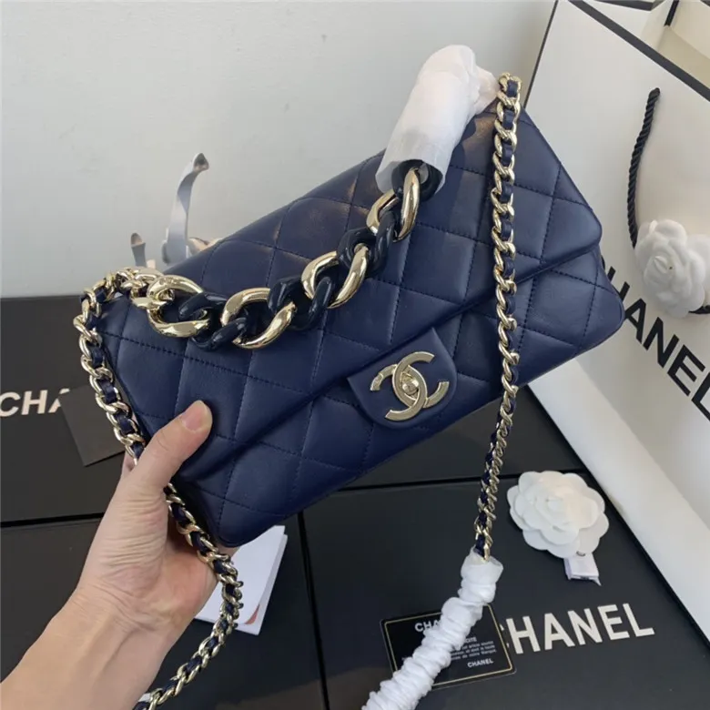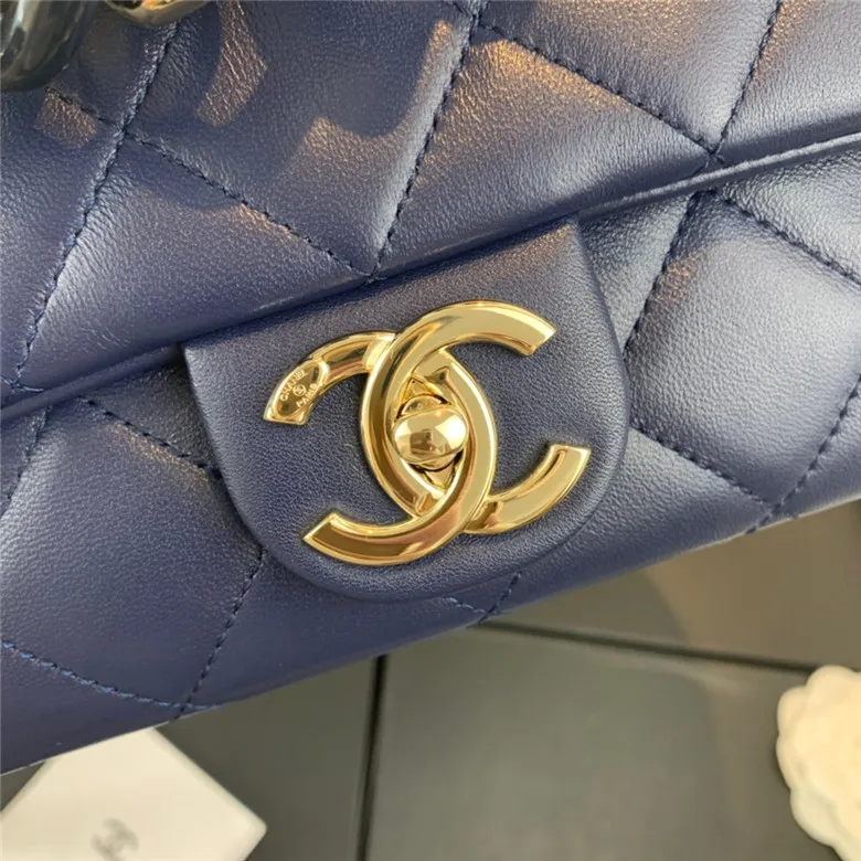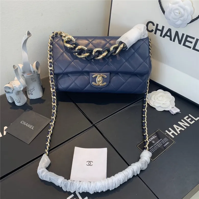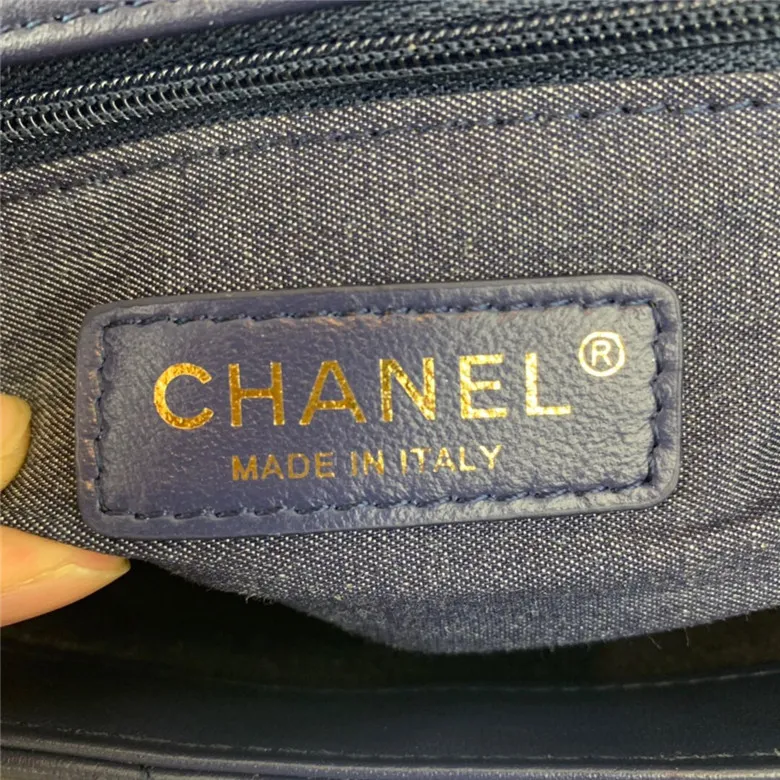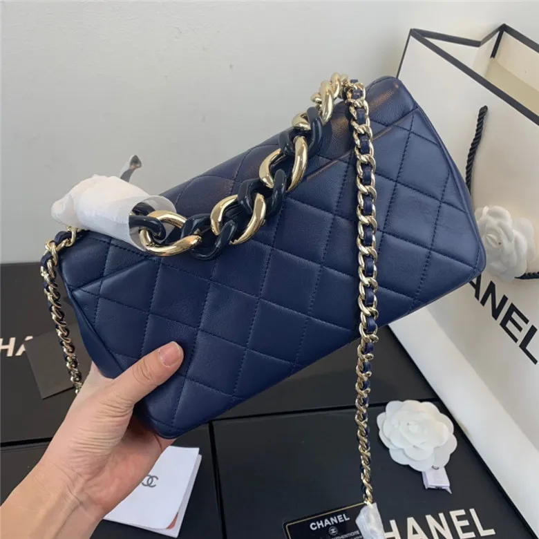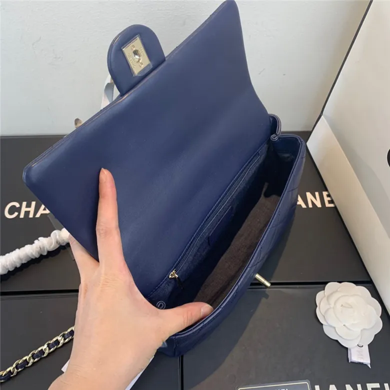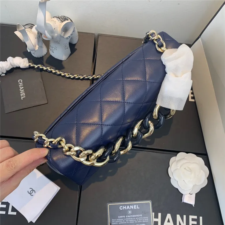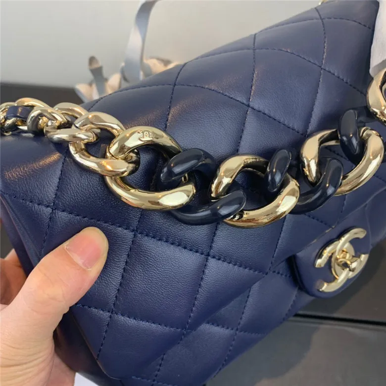 CHANEL LARGE FLAP BAG LAMBSKIN RESIN GOLDTONE METAL NAVY BLUE AS1354 B01914 N5336