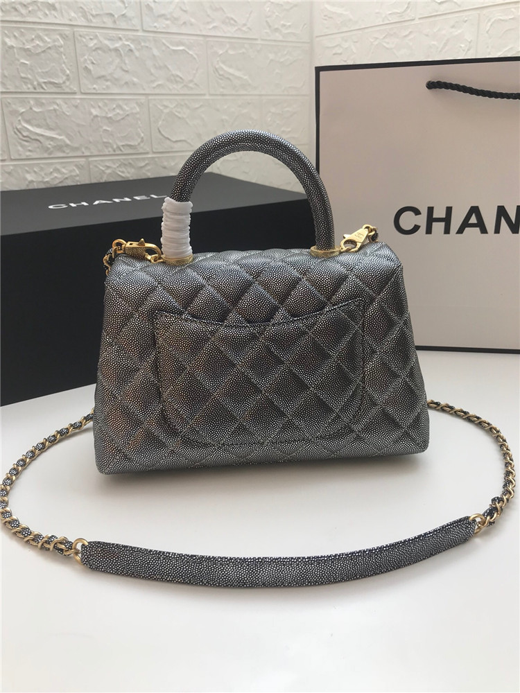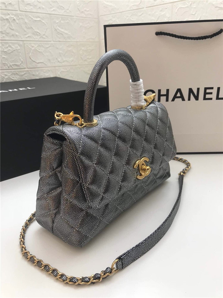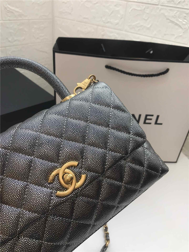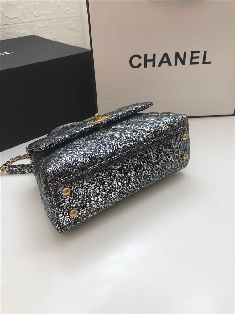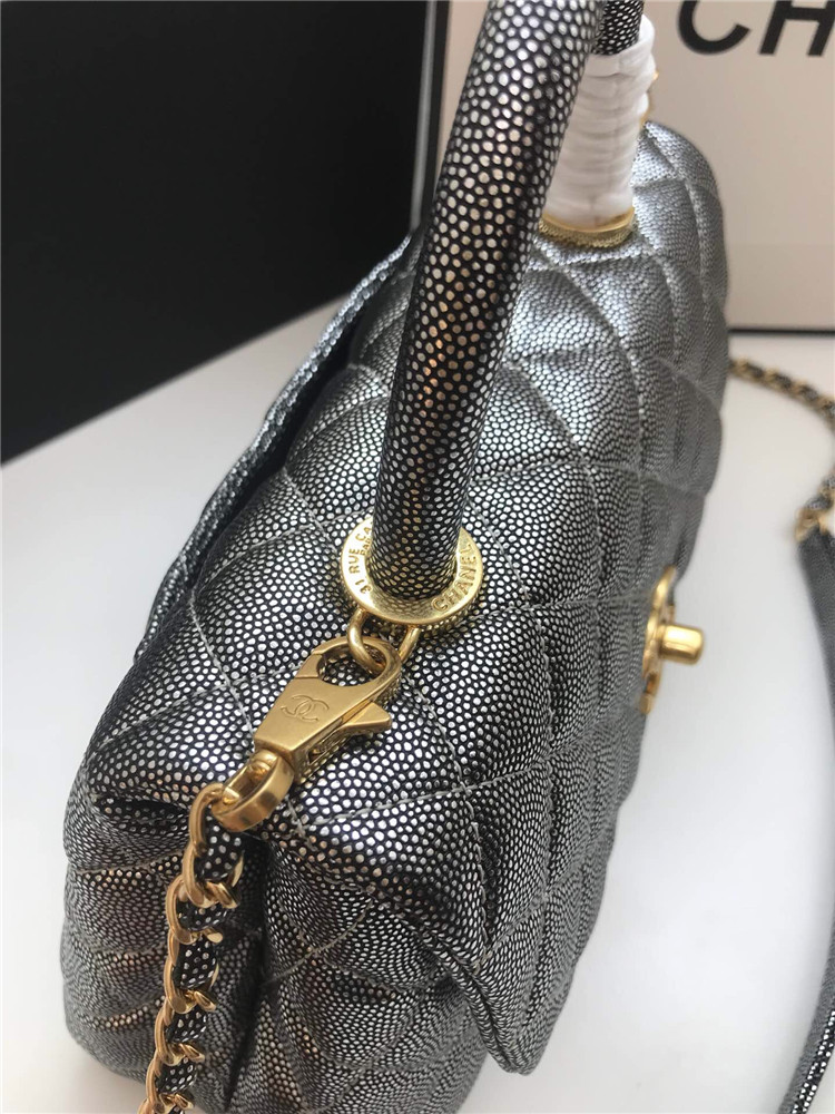 CHANEL METALLIC CAVIAR QUILTED MINI COCO HANDLE FLAP SILVER A92990 B00820 45002