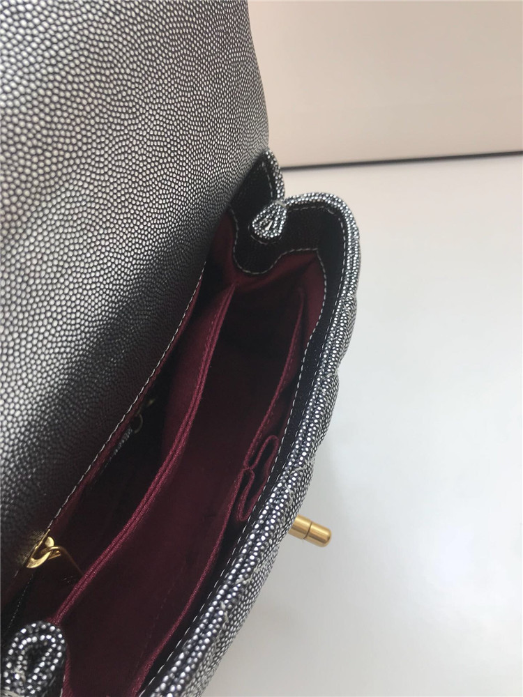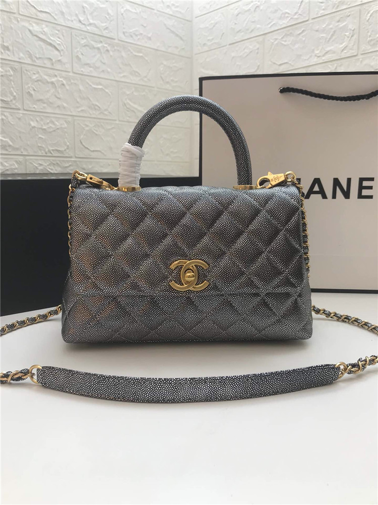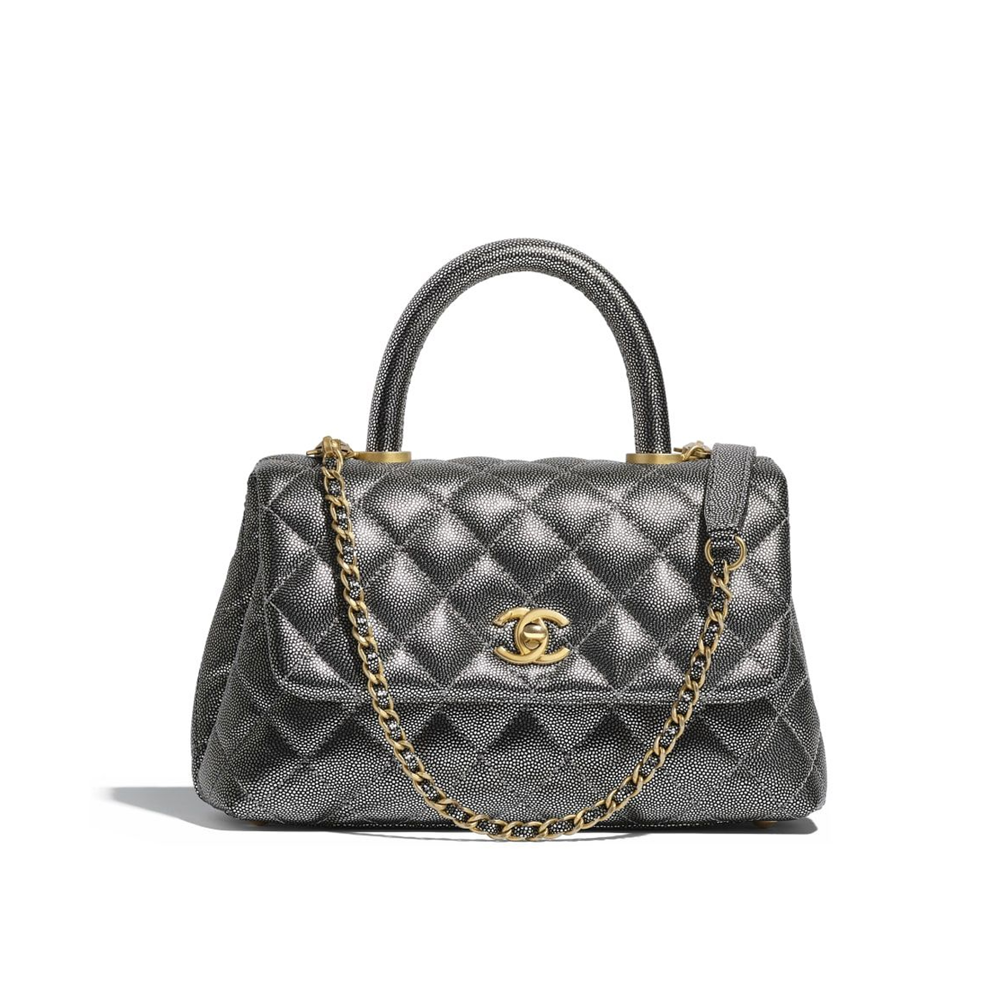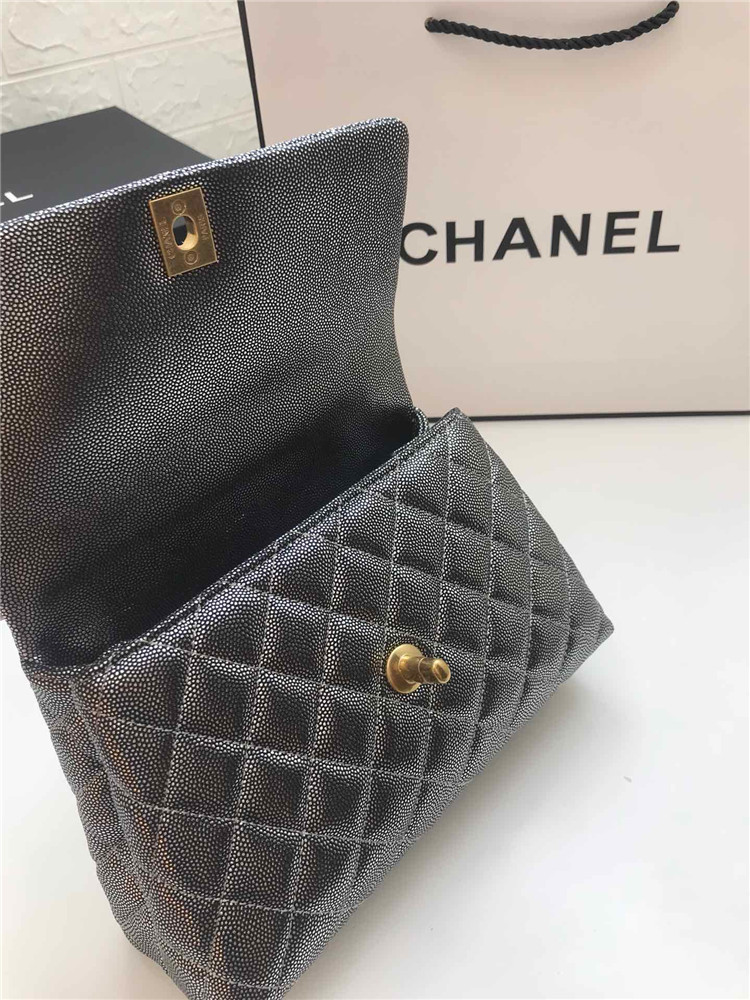 CHANEL METALLIC CAVIAR QUILTED MINI COCO HANDLE FLAP SILVER A92990 B00820 45002